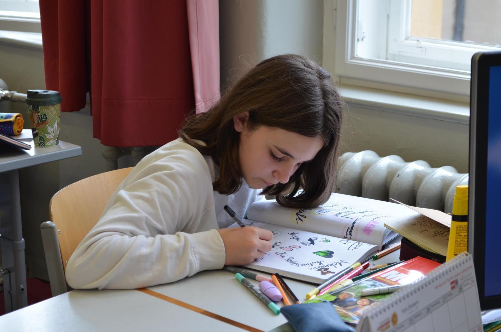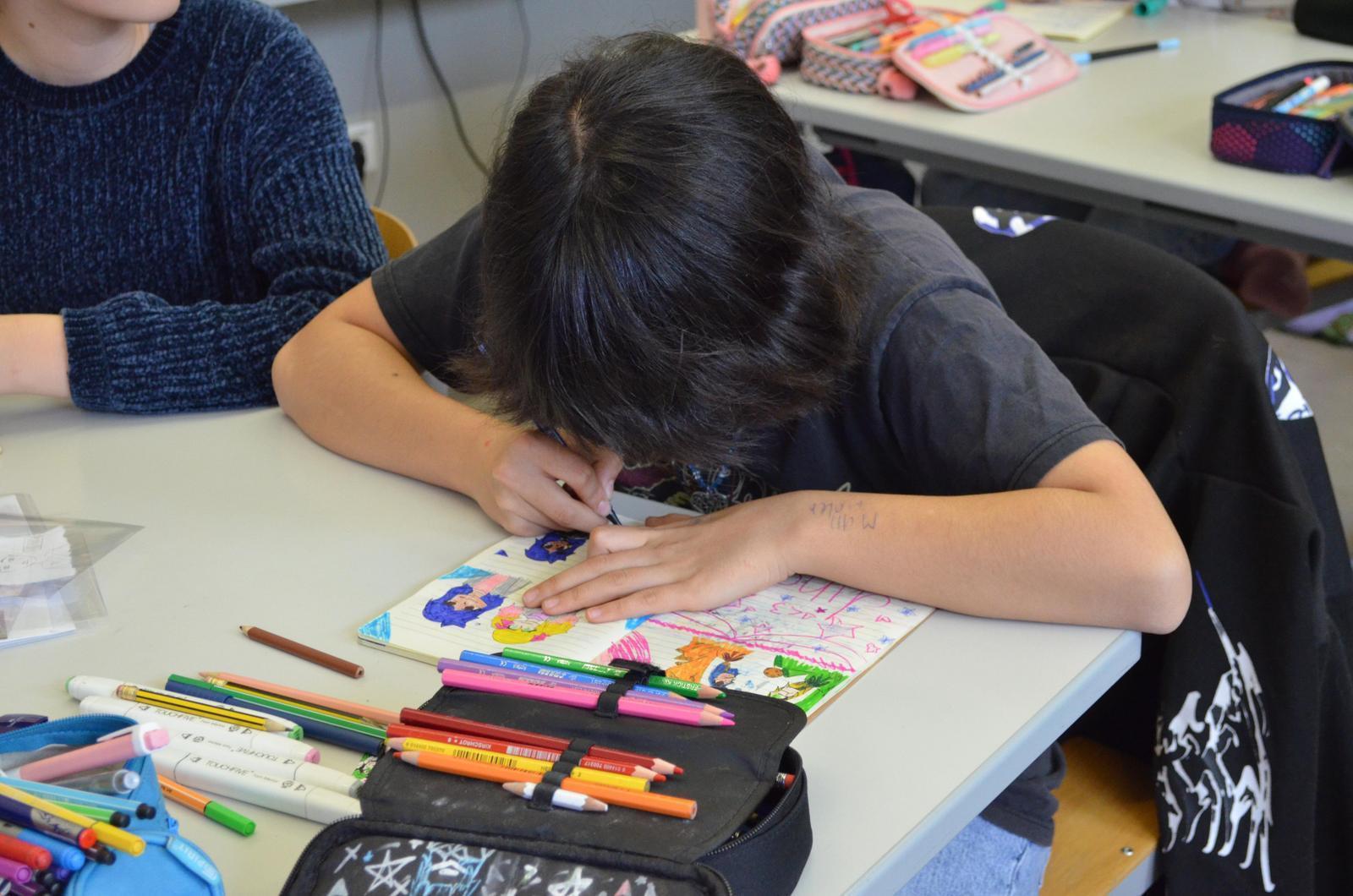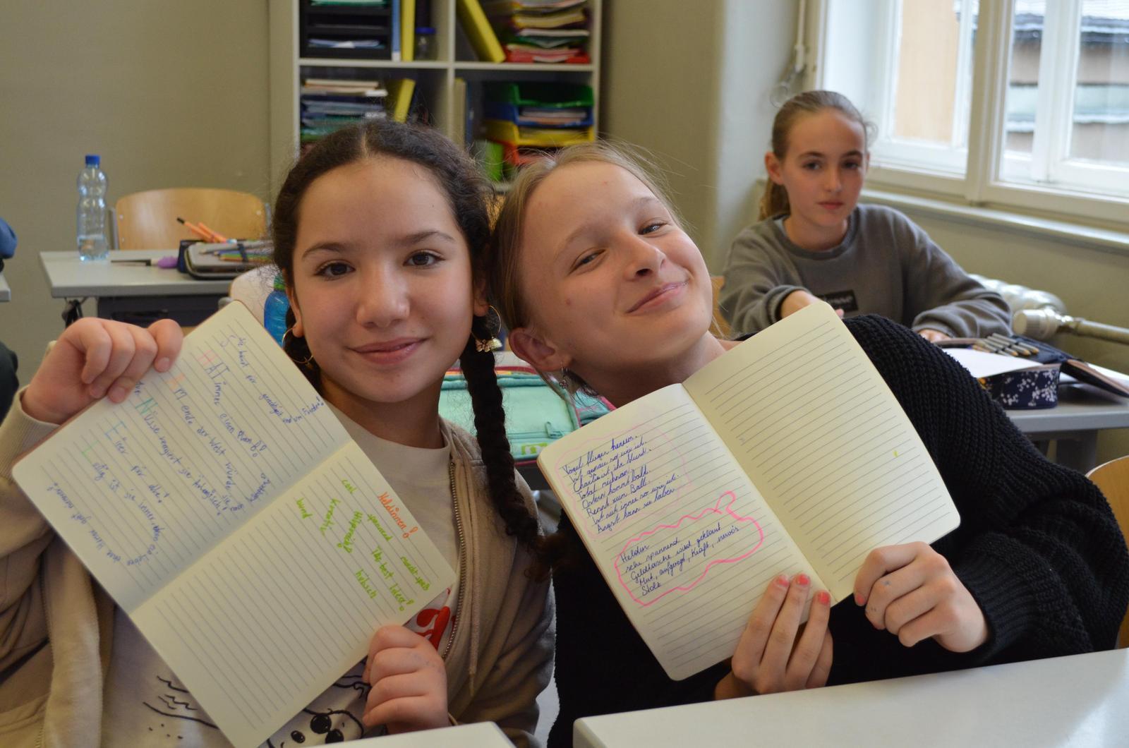 Die Arbeit an dem Artist Journal machte den Schülerinnen so viel Spaß, dass sie auch fernab des Workshops zwischen anderen Unterrichtsstunden daran weiterarbeiteten. In 4 Workshops und insgesamt 8 Stunden wurden so interessante Persönlichkeiten skizziert – sowohl bildlich, als auch in Form von ganzen Mood-Boards oder Inhaltszusammenfassungen von Geschichten. Den Mädchen wurde dabei die Freiheit überlassen, ihren Stil selbst festzulegen. Gerade die Form des Dialogs und des Schauspiels reizte viele. Aber auch Kurzgedichte und Collagen wurden ihnen nähergebracht.