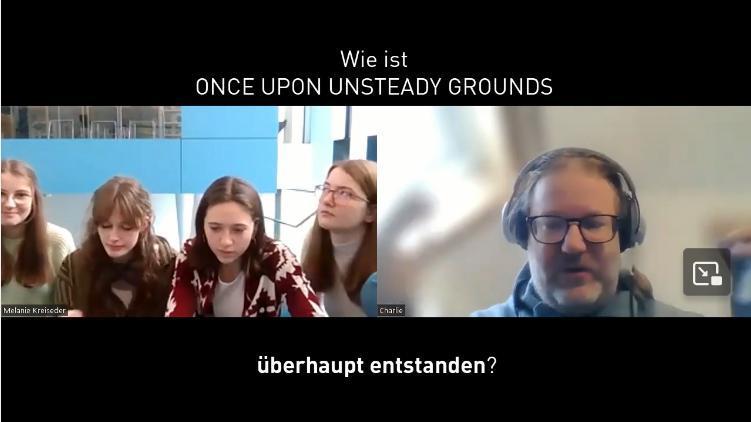 In der Online-Performance verwebt sich Maras Geschichte mit Erzählungen und Einblicken von live zugeschalteten Gästen aus allen Weltteilen. Außerdem setzten sich die Schüler/innen mit den Spezifika dokumentarischen Erzählens sowie mit den Besonderheiten des Formats Docuscape auseinander. Auf Basis dieser Arbeit führten die Klassen schließlich eigenständig Interviews mit den Künstler/innen des Medienkollektivs gold extra durch und erstellten kurze Video-Clips, welche anschließend zu einer Video-Einführung zu ONCE UPON UNSTEADY GROUNDS zusammengesetzt wurden.