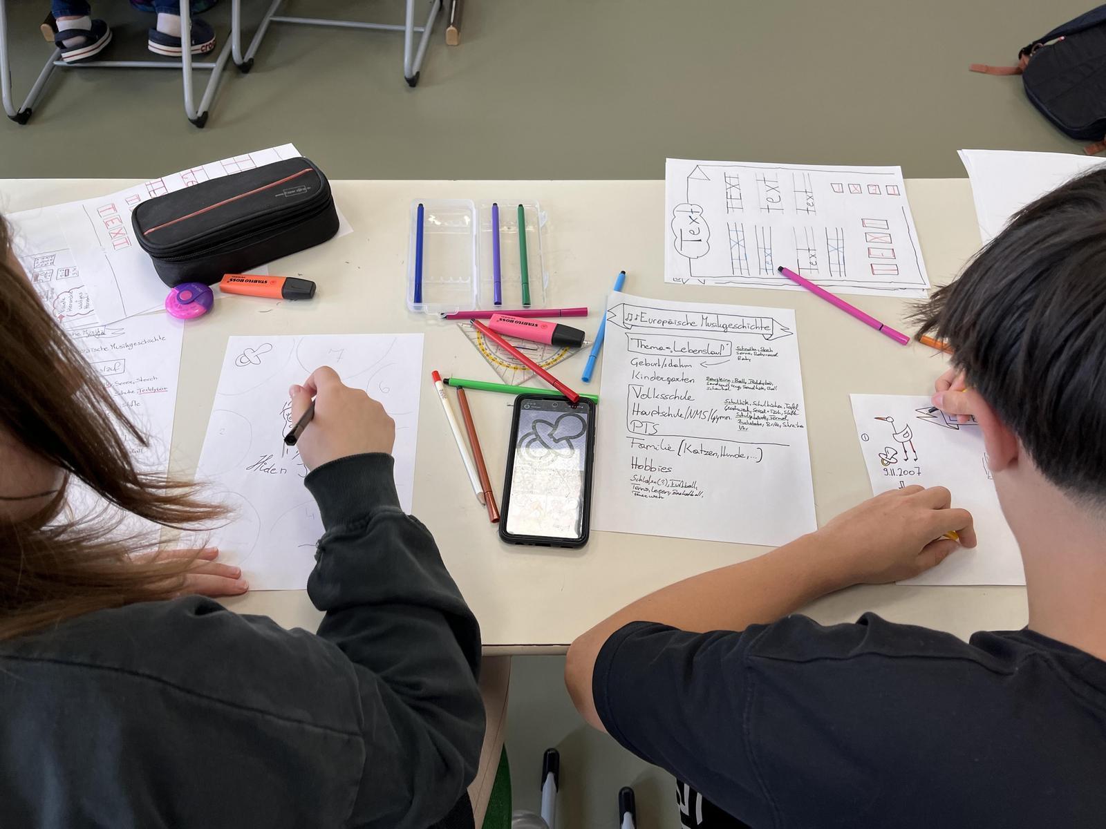 Der Workshop ist sehr gut angekommen. Ganz offensichtlich ist die Einfachheit der Methode in Kombination mit den ansprechenden Ergebnissen und der Möglichkeit, die eigene Kreativität einzubringen, eine Kombination, die (nicht nur) bei Schüler/innen hohes Interesse weckt und ermutigt. Nicht nur die Schüler/innen, auch die begleitenden Lehrer/innen haben hoch fokussiert und mit großer Freude mitgezeichnet und eigene Entwürfe gestaltet. Auch die teilnehmenden Integrationsschüler/innen samt ihrer Unterrichtsassistenz ließen sich begeistern. Ideal ist die Methode der Visualisierung auch deshalb, weil alle Inhalte umgesetzt werden und somit eine große Bandbreite an Interessen abgedeckt werden kann. Von allen Seiten ist der Wunsch nach einer Fortsetzung des Projekts gekommen. Besonders erfreulich war die große Flexibilität und die Offenheit, die in der PTS Deutschfeistritz dem Projekt entgegengebracht wurden: die Workshopeinheiten konnten auf Wunsch spontan verlängert werden und eine zusätzliche Klasse konnte am Projekt teilnehmen.