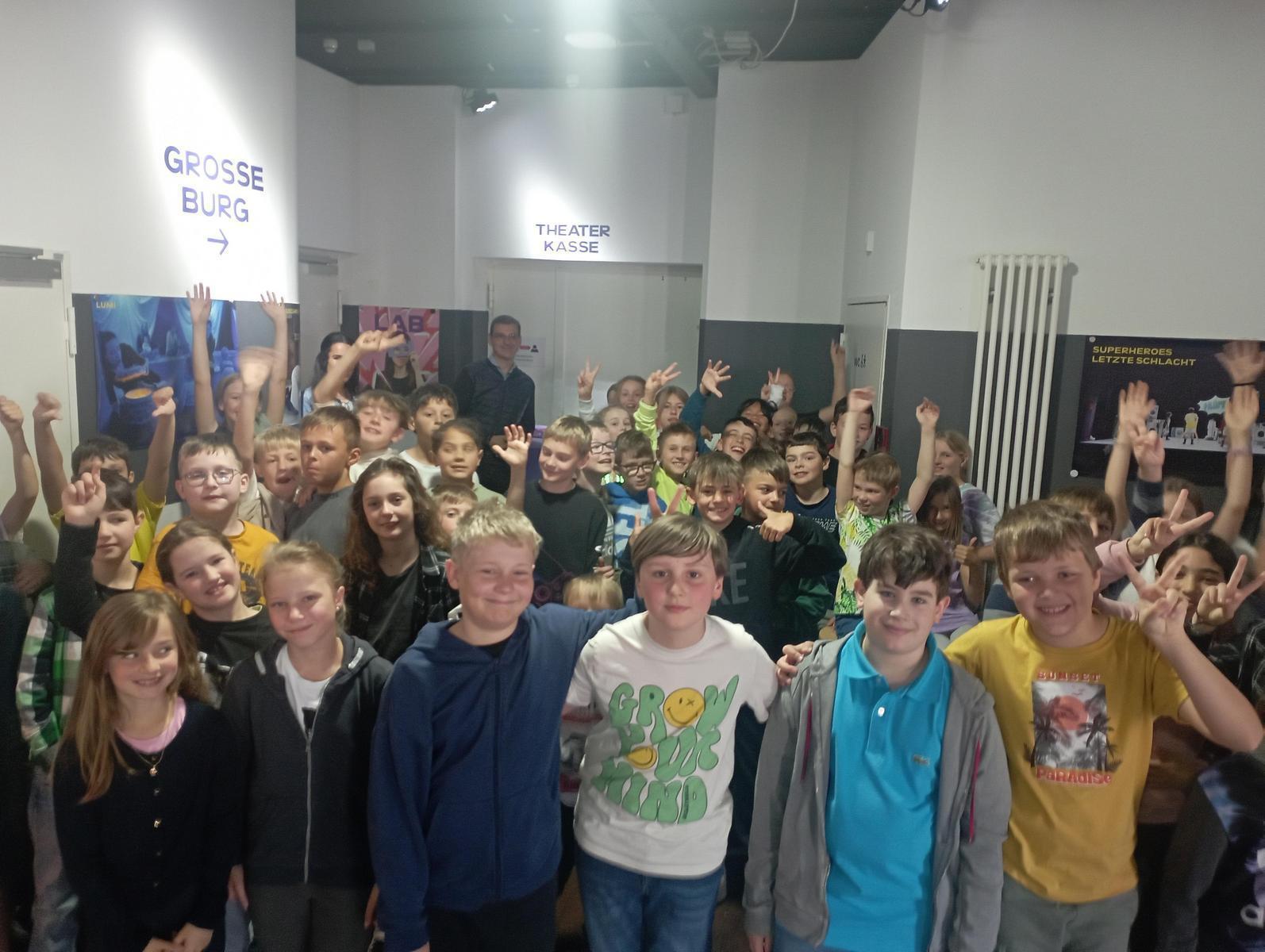 Pro Klasse fand ein theaterpädagogischer Vorbereitungsworkshop statt, indem sich die Kinder spielerisch mit den Themen der Inszenierung befassten. Sie wurden ans Theaterspielen und Entwickeln von eigenen Szenen herangeführt. Danach besuchten alle Klassen die Theateraufführung. Im Anschluss fand ein Nachgespräch mit den Schauspielerinnen und Schauspielern, der Dramaturgin, dem Regisseur und der Theaterpädagogin statt. Die Kinder nutzten die Möglichkeit viele interessierte Fragen zu stellen. Das Produktionsteam begegnete den Kindern auf Augenhöhe und war neugierig zu erfahren, wie die Kinder das Stück erlebten. Zurück in Ebbs wurde das Erlebte durch jeweils einen Nachbereitungsworkshop pro Klasse mit der Theaterpädagogin spielerisch vertieft, über das Geschehene reflektiert und am Schluss gemeinsam evaluiert.