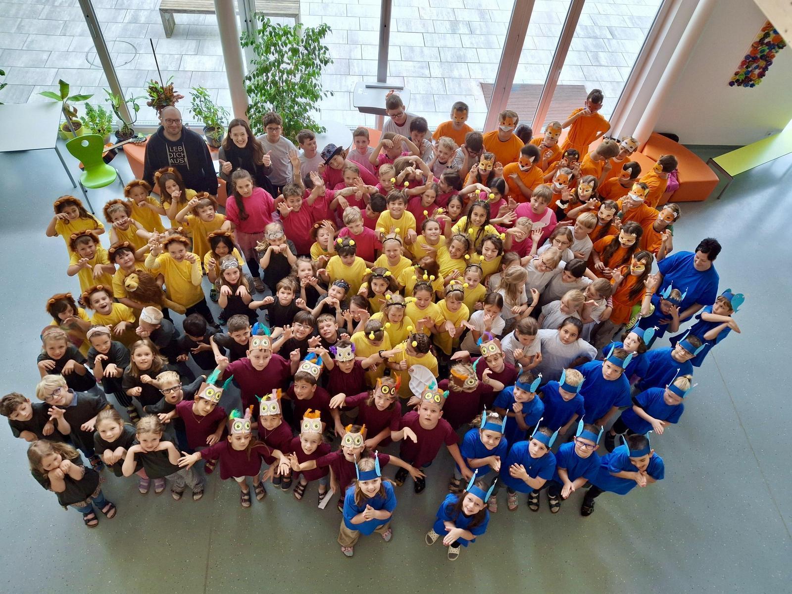 Die Volksschule Münchendorf startete ein Theaterprojekt, bei dem alle acht Klassen der Schule beteiligt waren. Jede Klasse hat ein eigenes Tiermaskottchen: Biene, Löwe, Elefant, Flamingo, Eule, Wal, Fuchs und Waschbär. Ziel war es, durch kreative Theaterspiele die Schüler/innen über Freundschaft und Schulgemeinschaft nachdenken zu lassen und ihre Klassengemeinschaft zu stärken, indem diese Tiere in einer gemeinsamen Geschichte zusammenkommen.