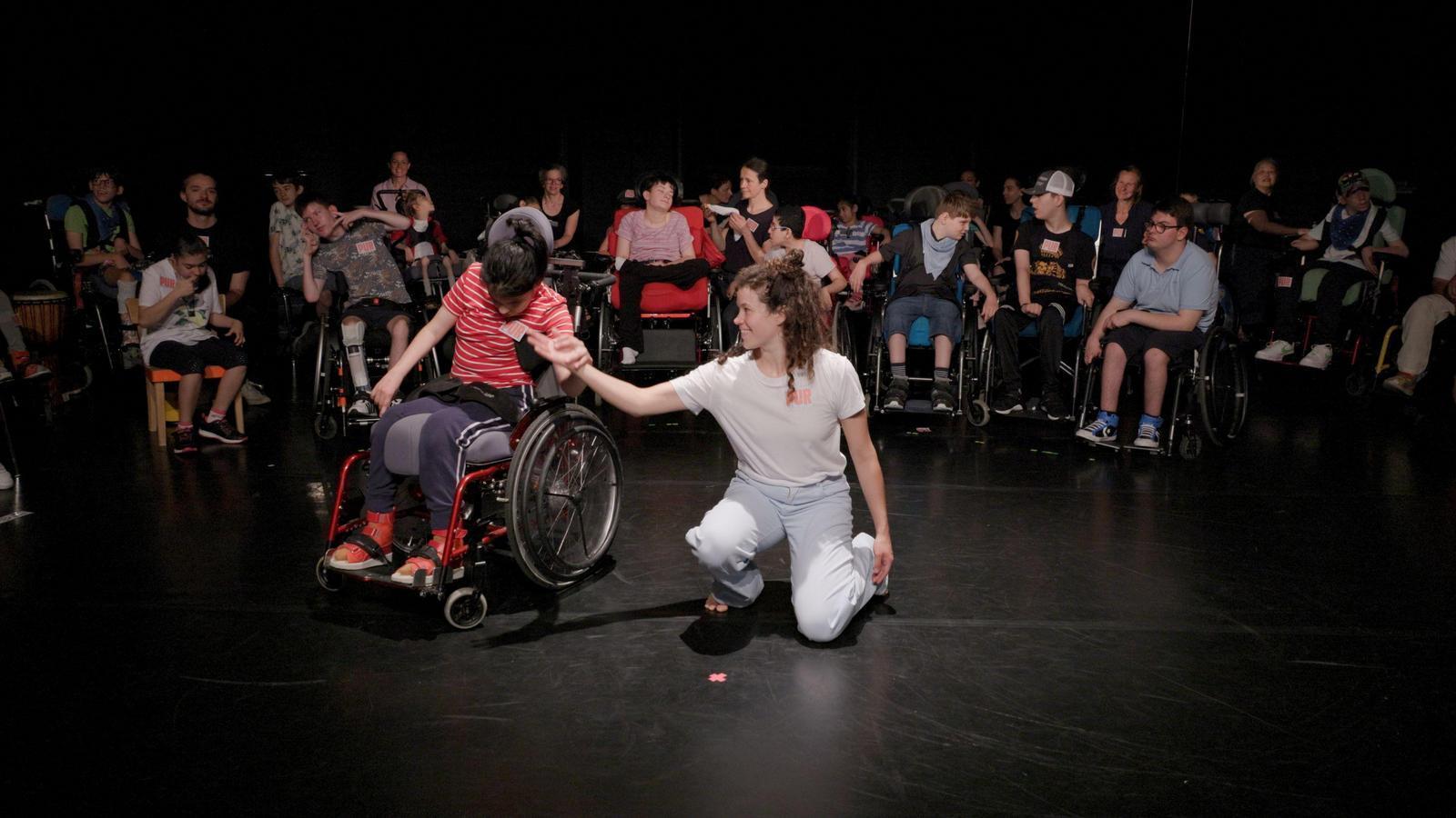 Von Jänner bis Juni 2024 begegneten sich in monatlich zunehmender Frequenz Künstler/innen des Toihaus Theaters und Schüler/innen sowie Betreuer/innen der Schule am Glanbogen, einer Einrichtung für junge Menschen mit Mehrfach- und Schwer-Behinderungen. Wesentlicher Ausgangspunkt dieses Zusammenschlusses war die gleichwertige und gleichberechtigte aktive Arbeit am gemeinsamen Projekt. Deshalb arbeiteten beide Instiutionen sowohl in der Organisation und Konzeptionierung des Projekts als auch in dessen Ausführung, Inszenierung und Reflexion im steten und intensiven Austausch miteinander. Somit konnten nicht nur die verschiedenen Bedürfnisse und Kompetenzen beider Projektpartner zur Gänze Berücksichtigung finden, sondern zudem neue Synergien entstehen, die in alleiniger Leistung nicht in dieser Form vorhanden gewesen wären. Beide Bereiche – der theatral-künstlerische und der pädagogisch-soziale – befruchteten und inspirierten einander und nahmen neue Erkenntnisse für die eigene Arbeit mit. Die Essenz dieser Begegnung wurde nach diesem intensiven halben Jahr an der Schule am Glanbogen sowie auf der Bühne des Toihaus Theaters vor einem sehr begeisterten Publikum gezeigt.