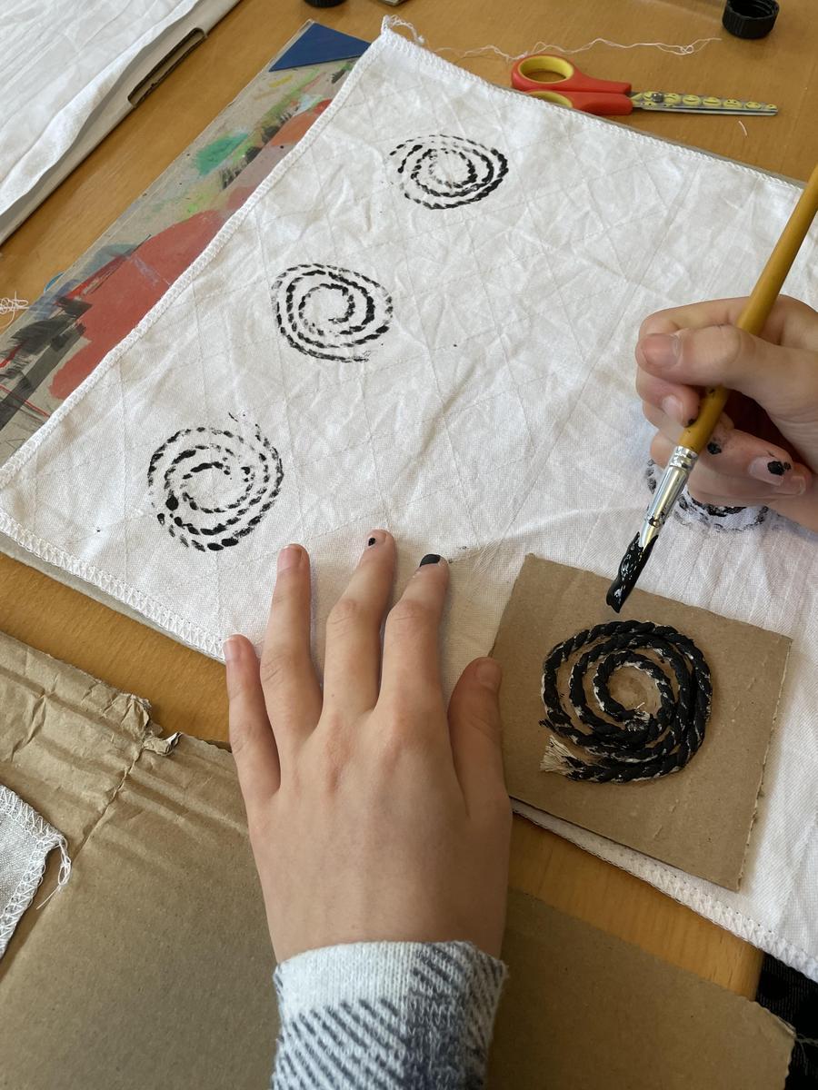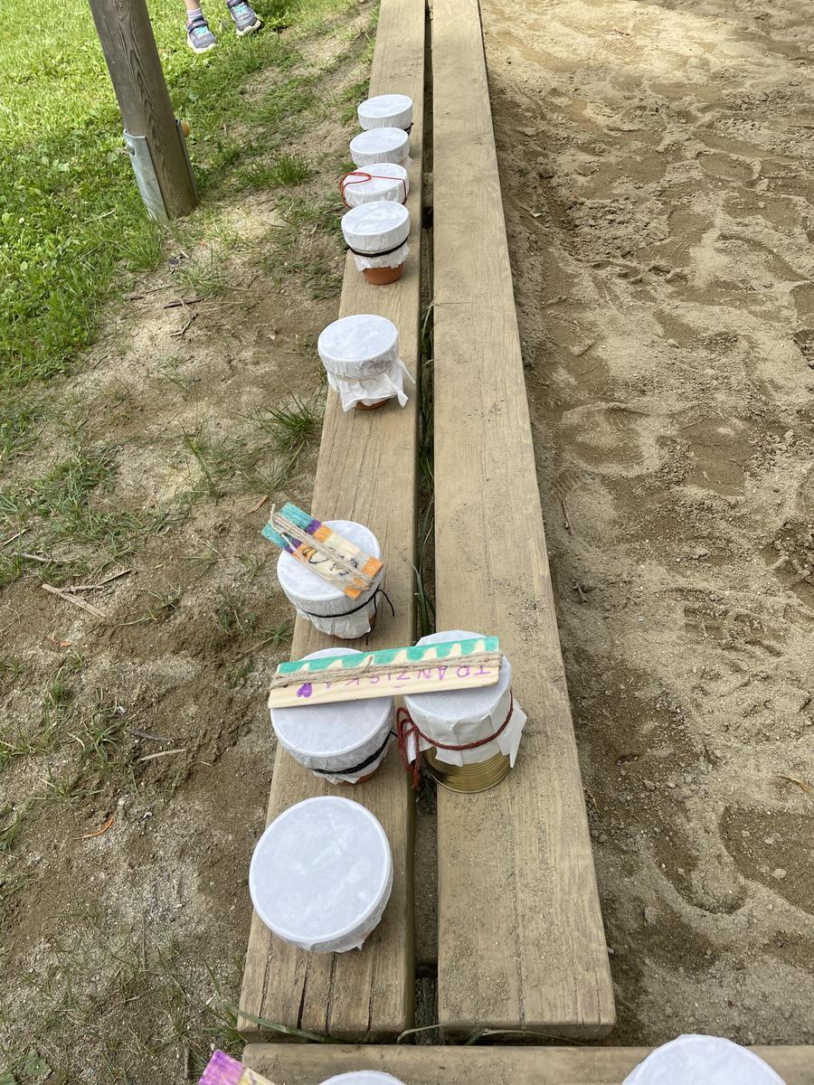 In den Workshops in der Projektwoche vom 3. bis 6. Juni bauten die Schüler/innen ihre eigenen urgeschichtlichen Musikinstrumente aus Natur- und wiederverwerteten Materialien, bedruckten recycelte Stoffe mit Schnurdruck, drehten Schnüre aus Bast und besuchten den Steinzeitgarten Keutschach. Zur Stärkung gab es eine gesunde "Pfahlbaujause". Alle Aktivitäten fanden außerhalb des Schulhauses statt.