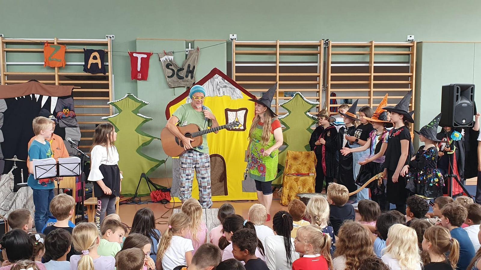 Der Verein Muth – Musik und Theater – arbeitet an der Schnittstelle von kultureller Bildung und künstlerischer Gestaltung und brachte mit dem Theaterstück "Der kleine Regenbogenbaum, der die Welt veränderte" eine Bearbeitung demokratischer Grundzüge in die VS Asten. Das Stück spielt in der Märchenwelt und handelt zum einen von den drei Freunde Zatsch, Ratsch und Muxelmil, die eine enge Freundschaft verbindet. Und dann ist da noch der Einwegzauberer Quasselhass, welcher ein Verschwindipuspulver erfunden habt, mit dem er das Gute in der Welt verschwinden lassen kann.