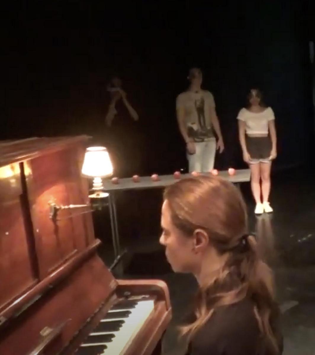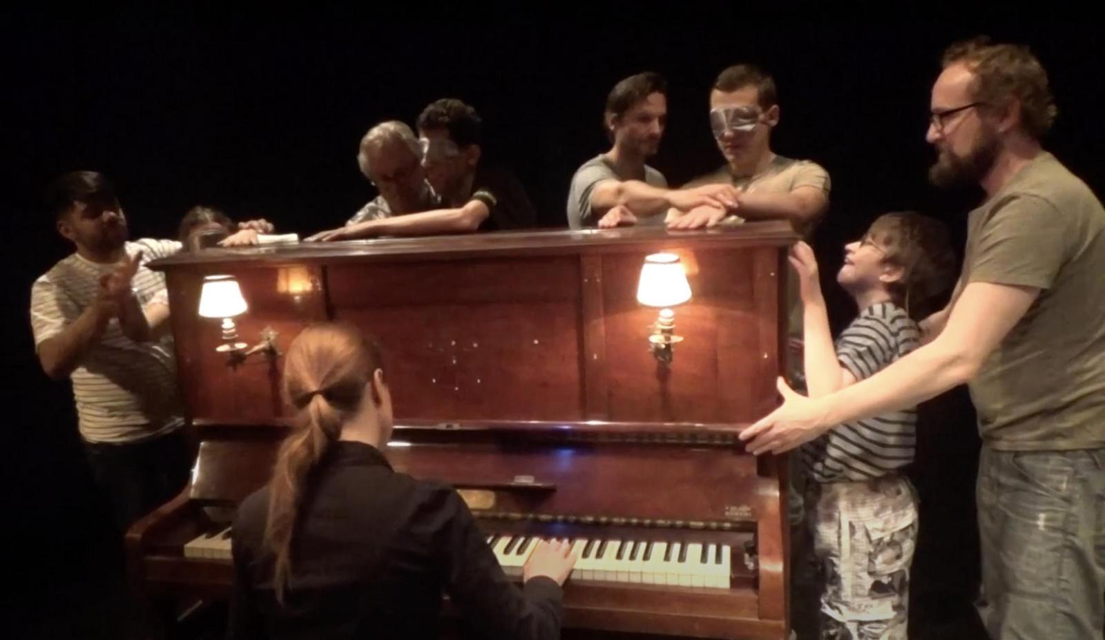Sie erforschten den Raum und erhöhten ihr Gefühl für Bewegung. Schließlich konnten sie unterschiedliche Instrumente wie Trommeln, Rasseln, verschiedene Teile des Klaviers taktil begreifen und so einen Zugang zu Musik erhalten. In der Aufführung wurde das Publikum selbst in die Rolle von Taubblinden versetzt. So begab sich das Publikum mit den Akteurinnen und Akteuren auf die Reise durch das Bühnenbild. Taubblinde konnten über den Tastsinn Musik erleben!