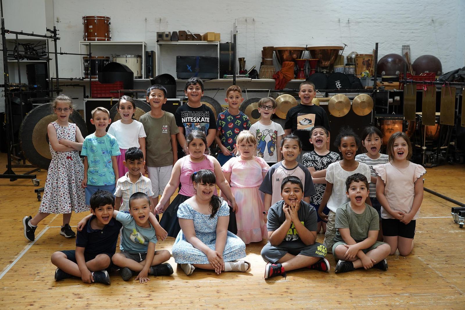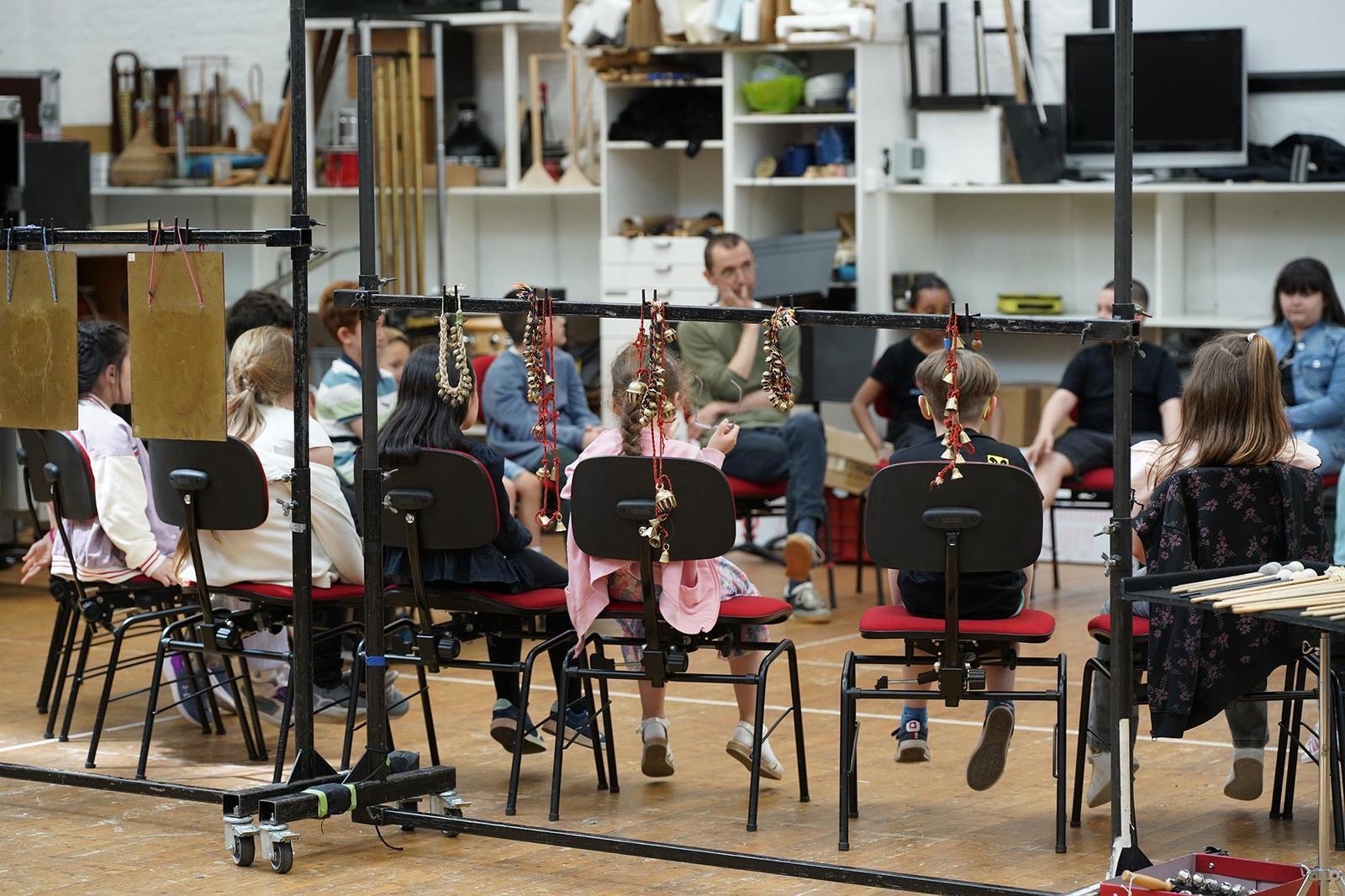 Das Klangforum Wien begleitete heuer die 1b-Klasse der Volksschule Am Hundsturm auf der gemeinsamen Erkundung des Klangs und seiner Transformationen. In regelmäßigen Workshops im Proberaum des Ensembles entdeckten die Schülerinnen und Schüler unter Anleitung zweier erfahrener Musiker ihre klangliche Neugier.