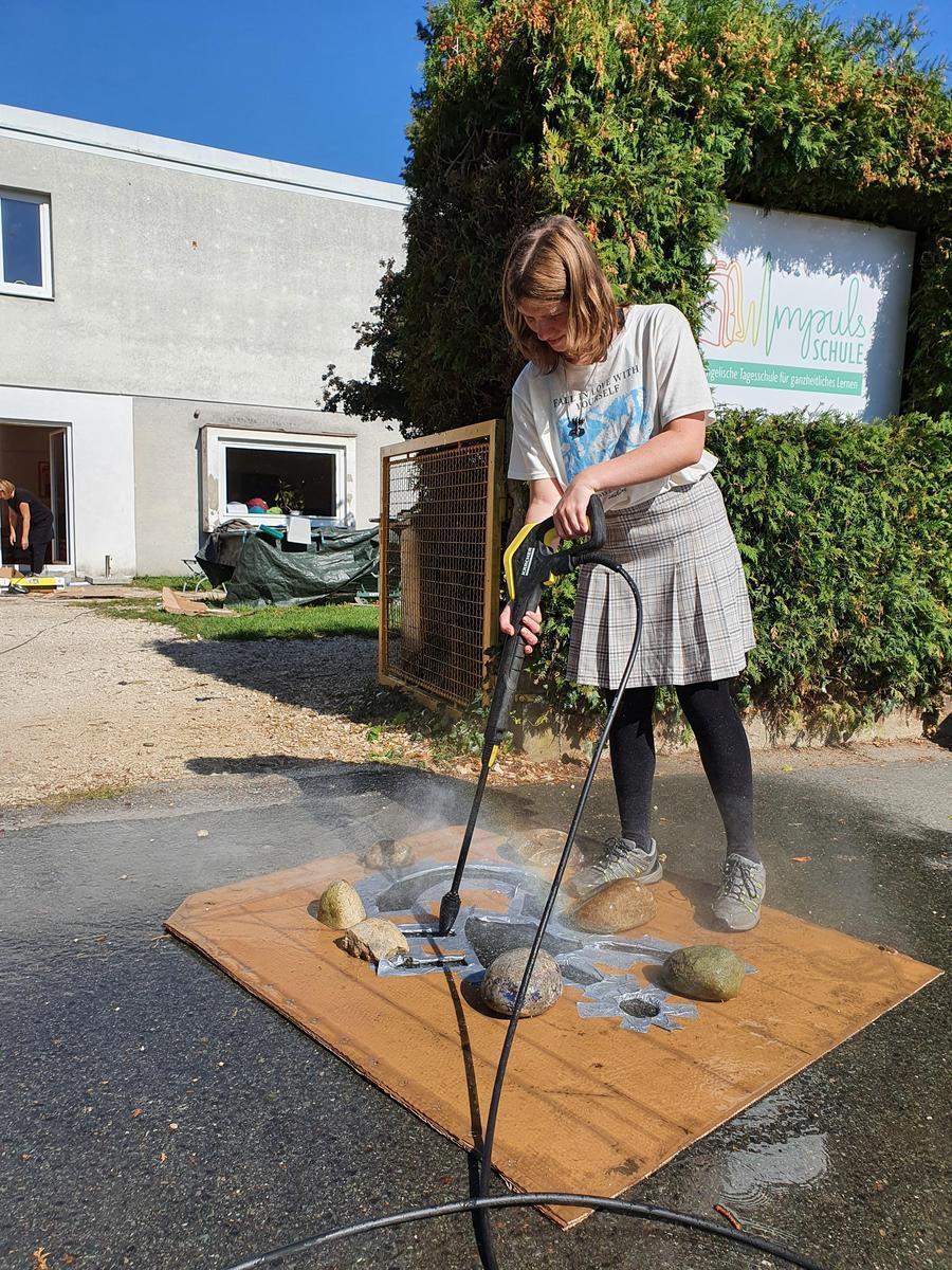 Im Rahmen der Durchführungsphase setzten die Schüler/innen schließlich diese Projekte in die Tat um. Bilder wurden gemalt, Skulpturen gebaut, Szenen entwickelt. Aber auch eine Fahrradwerkstatt entstand und der Komposter für die Schule wurde unter fachlicher Anleitung der FH-Wels neu gebaut.