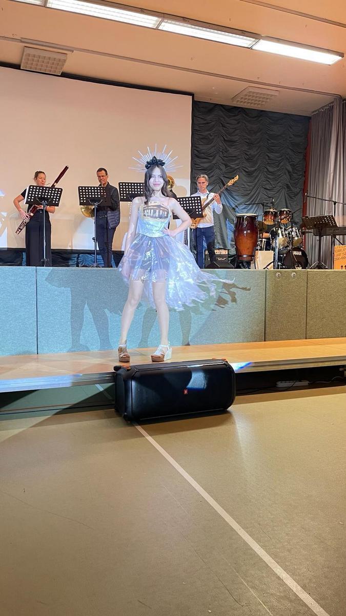 Schließlich fanden am 17.5. die beiden Aufführungen statt, eine am Vormittag für andere Schüler/innen und eine am Abend für Familie und Freunde. Die Aufführung begann mit der Modenschau, bei der die 20 Kleider zu Musik von den Wiener Symphonikern präsentiert wurden. Danach folgten die Beiträge der einzelnen Klassen: kurze Theater-Szenen, musikalische Improvisationen, Poetry Slams, selbst- oder umgeschriebene Songs, Texte.