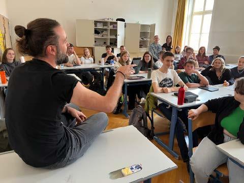 * Vorstellung und Vortrag der Komponisten in der Schule inklusive interessierte Maturant/innen. In diesem Projekt ging es sehr zentral darum, wie man als Komponist zu seiner musikalischen Aussage gelangt und wie der Prozess vom Auftrag und von der Idee bis zu einem ausführbaren Ergebnis läuft. Eine häufige Überlegung war für beide Komponisten, wie man denn bemerkt, ob man 'falsche Töne' schreibt; diese würden, so die Tonsetzer, schon bald beim Zuhören auffallen und auf diese Weise früh eliminiert werden können.