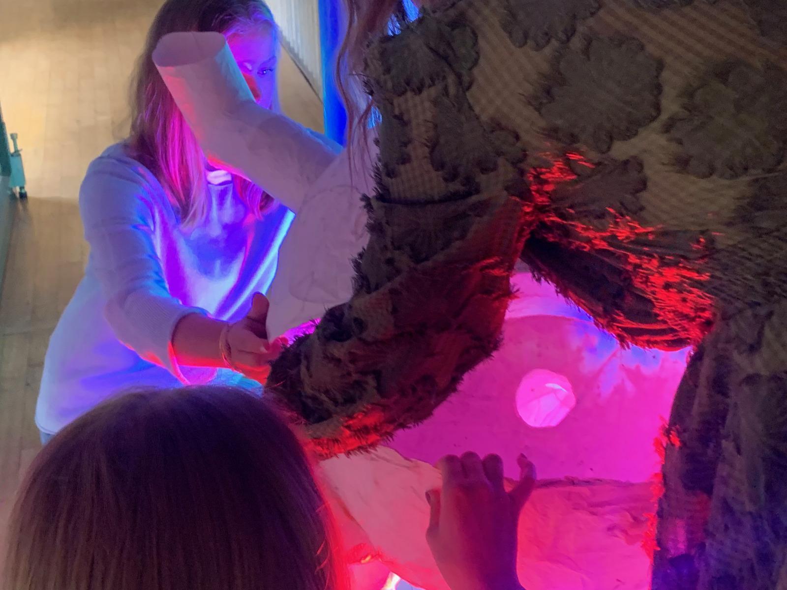 Ausgehend von den Möglichkeiten, Licht über soundempfindliche Sensoren zu steuern und den rhythmischen Wechsel von farbigem Licht, die Hanno Kautz den Schüler/innen zeigte, entwickelten die bildnerischen Klassen (7b und 7e) unter Leitung von Prof. Ingeborg Kofler und Prof. Barbara Mairinger Installationen für das Stift Viktring sowie die center.stage im kärnten.museum.