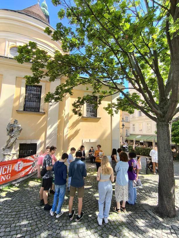 b) Führung über den Ulrichsplatz inkl. Kirchenbesichtigung. Eine Aufgabe erforderte genaues Schauen auf Details von Architektur und Kunst – DIGITALE FOTOS.