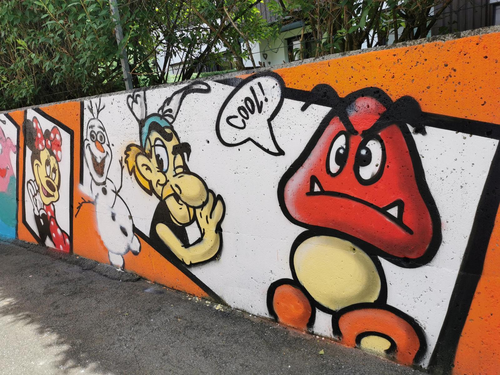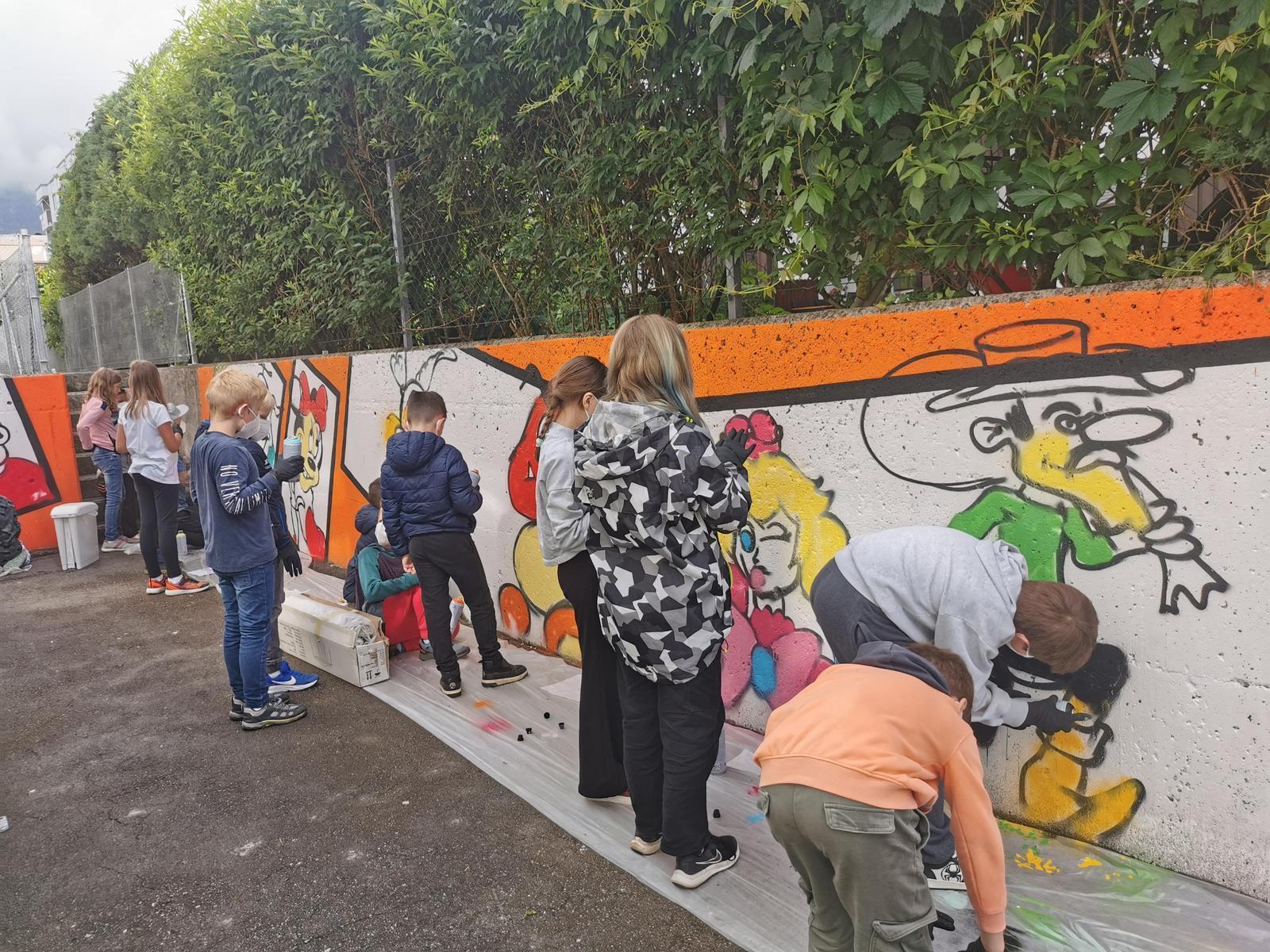 Besonders das Zeichnen und Aussuchen der Charakter und das selbst gestalten der Schuleingangsmauer hat den Kindern viel Freude bereitet und ihnen Selbstvertrauen gegeben: Etwas auf das sie jeden Tag stolz sind.