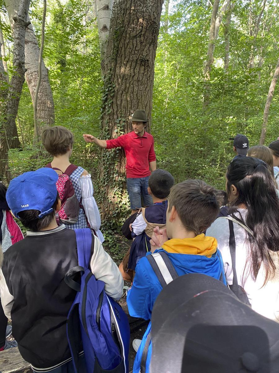 Die Schüler/innen lernten zu Beginn die Ausstellung interaktiv kennen – geführt von zwei Kunstvermittlerinnen stand das Erkunden der künstlerischen Arbeiten im Zentrum. Sie setzten sich mit dem Begriff des Ökosystems und der vielschichtigen Funktion des Waldes, aber auch den kritischen Aspekten zur Waldnutzung auseinander. Im zweiten Teil lernten die Schüler/innen gemeinsam mit einem Waldpädagogen den Wald im nahegelegenen Prater auf spielerische Art und Weise kennen. Die Entdeckungsreise sollte ihnen die unmittelbare Natur näherbringen und eine Verbindung zu dem so naheliegenden Lebensraum schaffen.