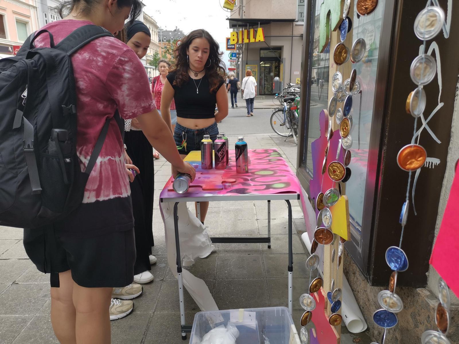 Der Leerstand in der Erdgeschosszone in der Stadt erscheint als idealer Ort für junge Menschen und ihre Kreativität. Ein Ort zwischen vorher und nachher, nicht mehr und noch nicht einer speziellen Funktion, einem bestimmten Charakter zugeschrieben, bietet er genau jenen Freiraum, den junge Menschen neu erfinden können und damit ein Stück weit mehr DA SIND.