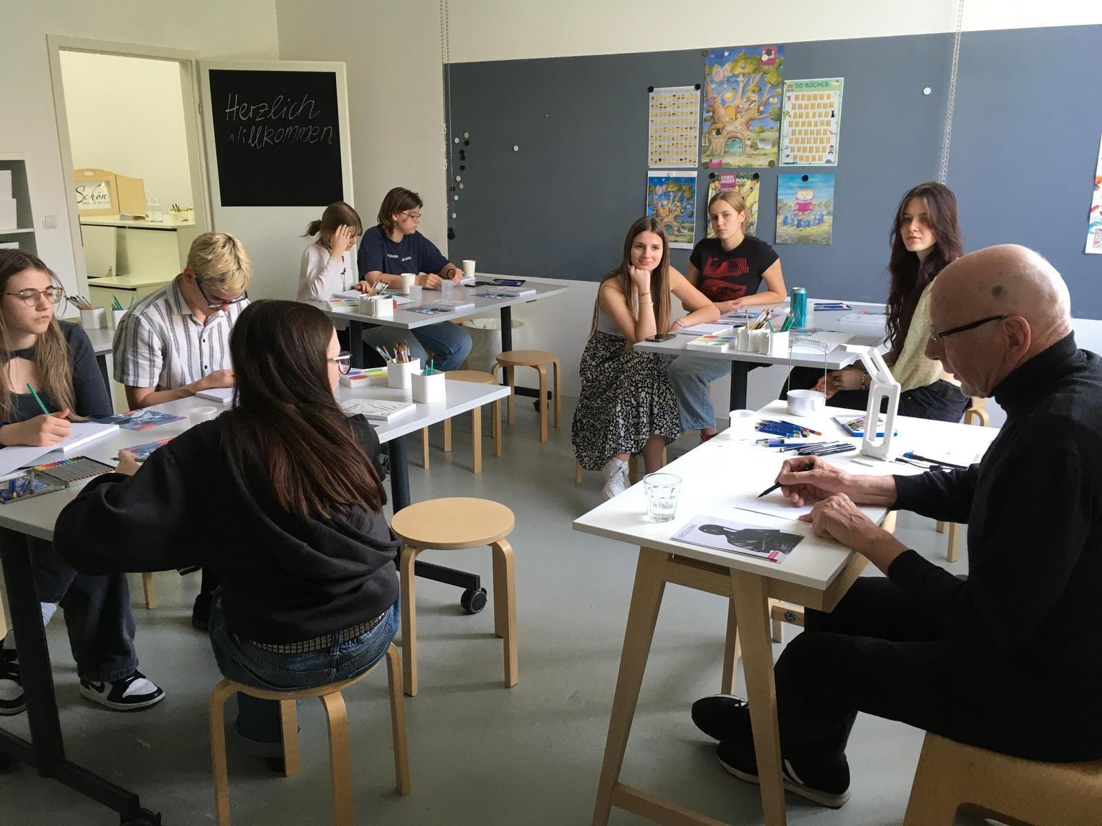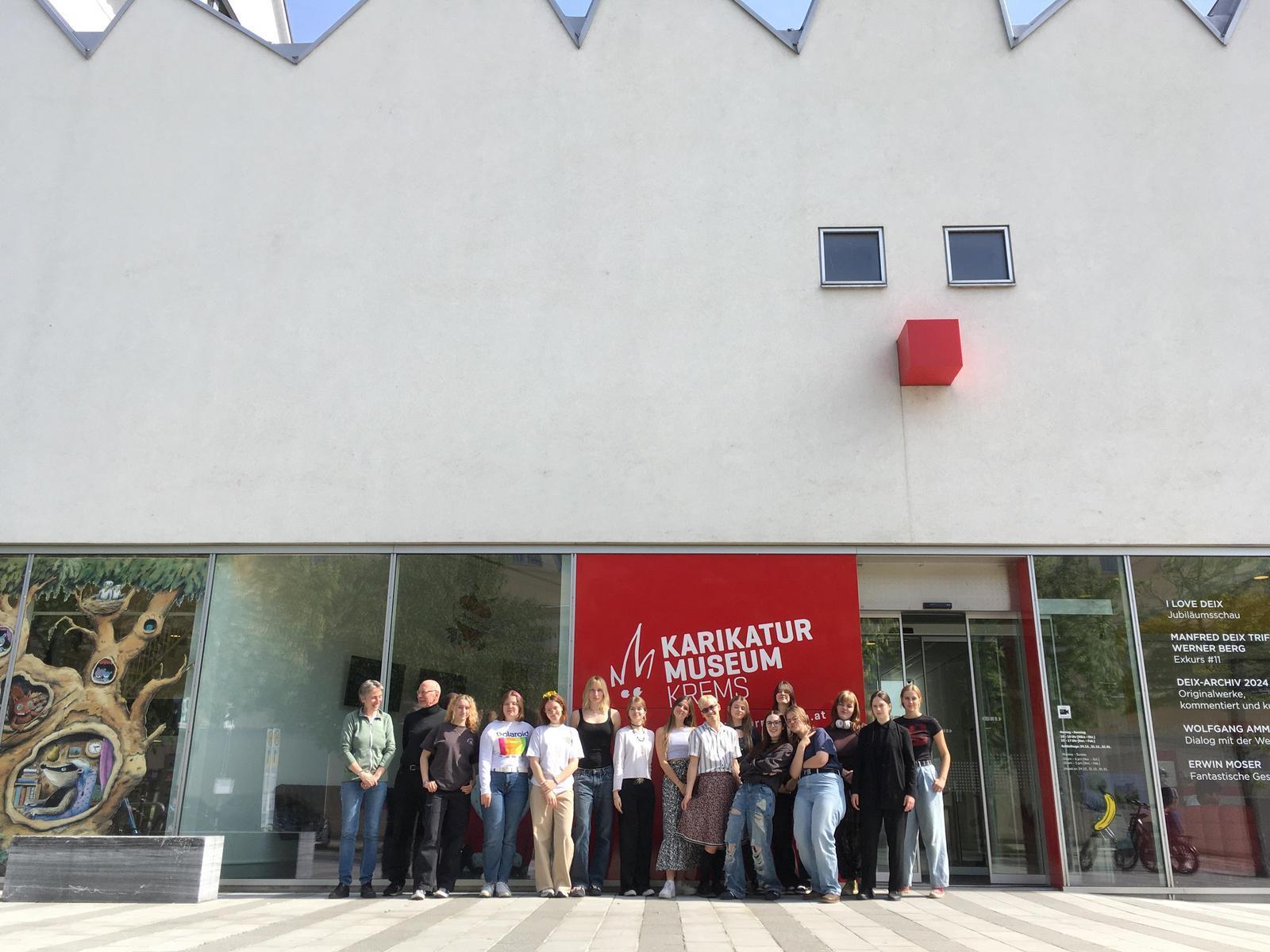 Im Karikaturmuseum Krems diskutierten die Jugendlichen mit Zeichner Wolfgang Ammer über seine Kunst und darüber, wie er Zeichnungen zur Gesellschaftskritik einsetzt. Er unterstützte die Schüler/innen dabei, nun ihre eigenen Ideen künstlerisch umzusetzen.