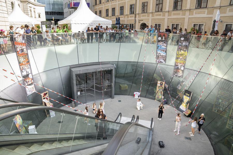 Die 17 SDGs werden in Form einer "Living Gallery of Humanity" im Trichter sichtbar und fühlbar gemacht. Mit dieser Galerie möchten die Schüler/innen ein Zeichen setzen – berührende, dramatische, poetische und nach dem Motto "Bühne frei für Menschlichkeit". Das Ensemble setzte szenisch/tänzerisch die Works of Art u.a. "Be a VOICE! ", "RUNWAY der Menschlichkeit" – FREEZE! erfolgreich in Szene.