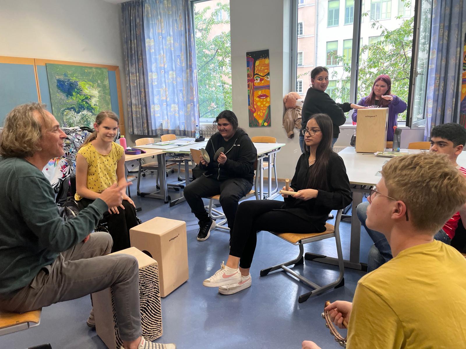 Seitens der engagierten Klassenlehrerin bestand der Wunsch, den Schülerinnen und Schülern im letzten Pflichtschuljahr im Sommersemester 2024 einen Workshop anzubieten, in welchem die Klasse durch eigenes Erleben und aktives Mitgestalten Einblicke in künstlerische Arbeitsprozesse gewinnt. Neben der Vermittlung der vorgesehenen Lerninhalte und Herausforderungen durch den Erwerb deutscher Sprachkompetenzen bestehe wenig Raum für künstlerische Fächer und Aktivitäten, daher kann ein Kulturvermittlungsprojekt kreative Zugänge zum Lernen ermöglichen.