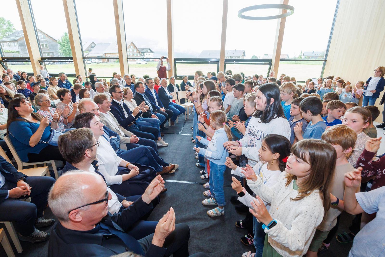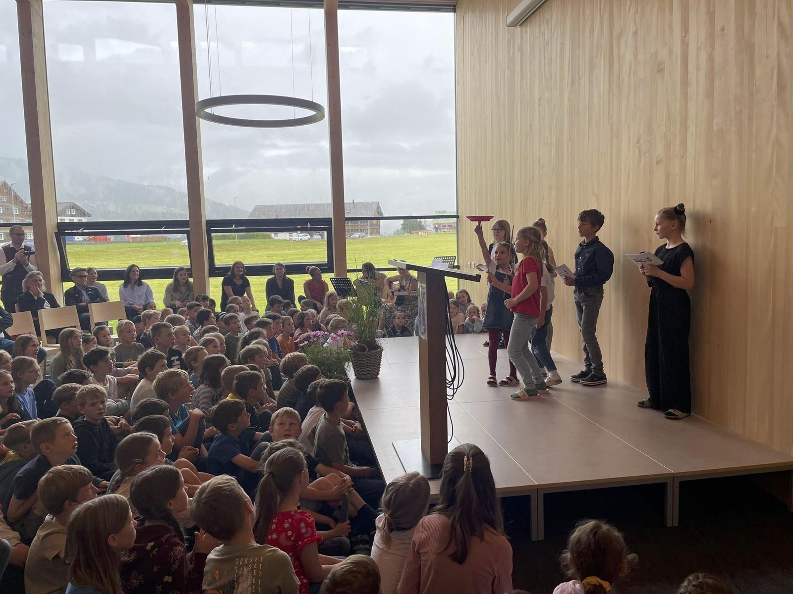 Andelsbuch hat eine neue Volksschule für die Kinder ihrer Gemeinde gebaut. Ein Künstler des Vereins Mutante hatte gemeinsam mit Schülerinnen und Schülern ihren neuen (Schul)-Alltag hinterfragt und ihnen geholfen über theaterpädagogische Methoden über den Tellerrand zu schauen. Die Kinder erhielten durch verschiedene Rollenspiele und Theaterproben eine neue Stimme und machten sich gegenseitig Mut, um das gewöhnliche zu durchbrechen. Bei den Recherchen und den Proben wurden soziale Fragestellungen hervorgehoben, die einzelnen Klassen nach und nach im Probeprozesses zusammengeführt. Verschiedene Altersgruppen unterstützten sich gegenseitig und konnten einander helfen.