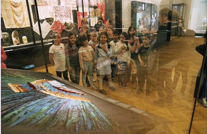 Ausgestattet mit einem "Märchenkoffer", den die Lehrer/innen beim Coaching im Atelier des Weltmuseums erhielten, wurden sie von der professionellen Erzählerin gemeinsam mit Kulturvermittler/innen des Hauses und des Vereins im Hinblick auf Erzählkunst und Umsetzung des Projekts zunächst eingeschult. Jedes Kind erhielt ein internationales Märchenbuch, das von den Schüler/innen mit Zeichnungen zu vervollständigen war. Die einzelnen Gegenstände des Koffers (Geige, Weizenhalm, Fisch, etc.) bildeten das haptische Einführungs-Momentum in die verschiedenen Märchen, die die Pädagog/innen im Unterricht durchnahmen und zum Erzählen von Märchen aus den eigenen Kulturkreisen der Kinder animieren durften. Der Besuch im Weltmuseum führte in ein aufgebautes Märchenzelt, in dem eine professionelle Erzählerin die Geschichte eines Kolibris erzählte, wobei Kinder und Lehrer/innen mit eingebunden waren und mitwirkten. Passend zu dem Märchen-Thema erhielten die Kinder eine Führung durch die südamerikanische Abteilung des Museums mit Kulturvermittler/innen des Hauses.