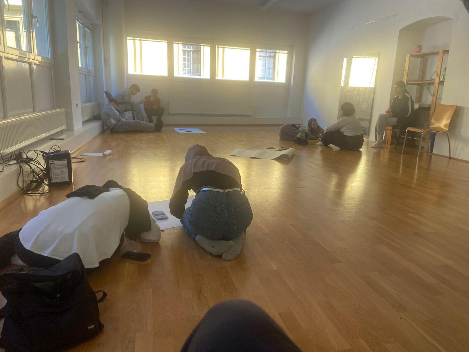 Unter dem vorläufigen Titel "Identität und Zugehörigkeit" starteten wir mit einer scheinbar einfachen Frage: Wie nehmen wir uns selbst und andere im Alltag wahr – und wie prägt unser eigenes Verhalten diese Interaktionen? Im geschützten Theaterraum und später in der Öffentlichkeit, an der Bushaltestelle erprobten wir dies praktisch. Die Jugendlichen wurden eingeladen, Details ihres Umfelds bewusst zu beobachten – jene unscheinbaren Momente, die im täglichen Leben oft übersehen werden – und diese kreativ zu verarbeiten.