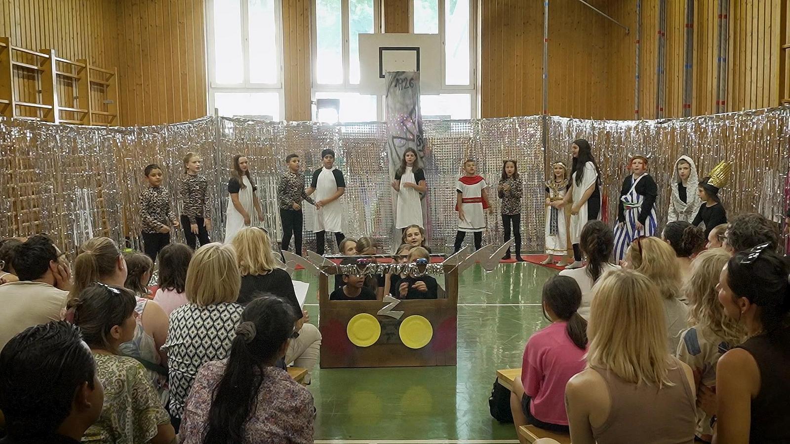 Am Ende des Projekts wurde eine Aufführung im Turnsaal veranstaltet und das Kindermusical vor den Eltern und anderen Schulklassen der VS Zieglergasse aufgeführt.