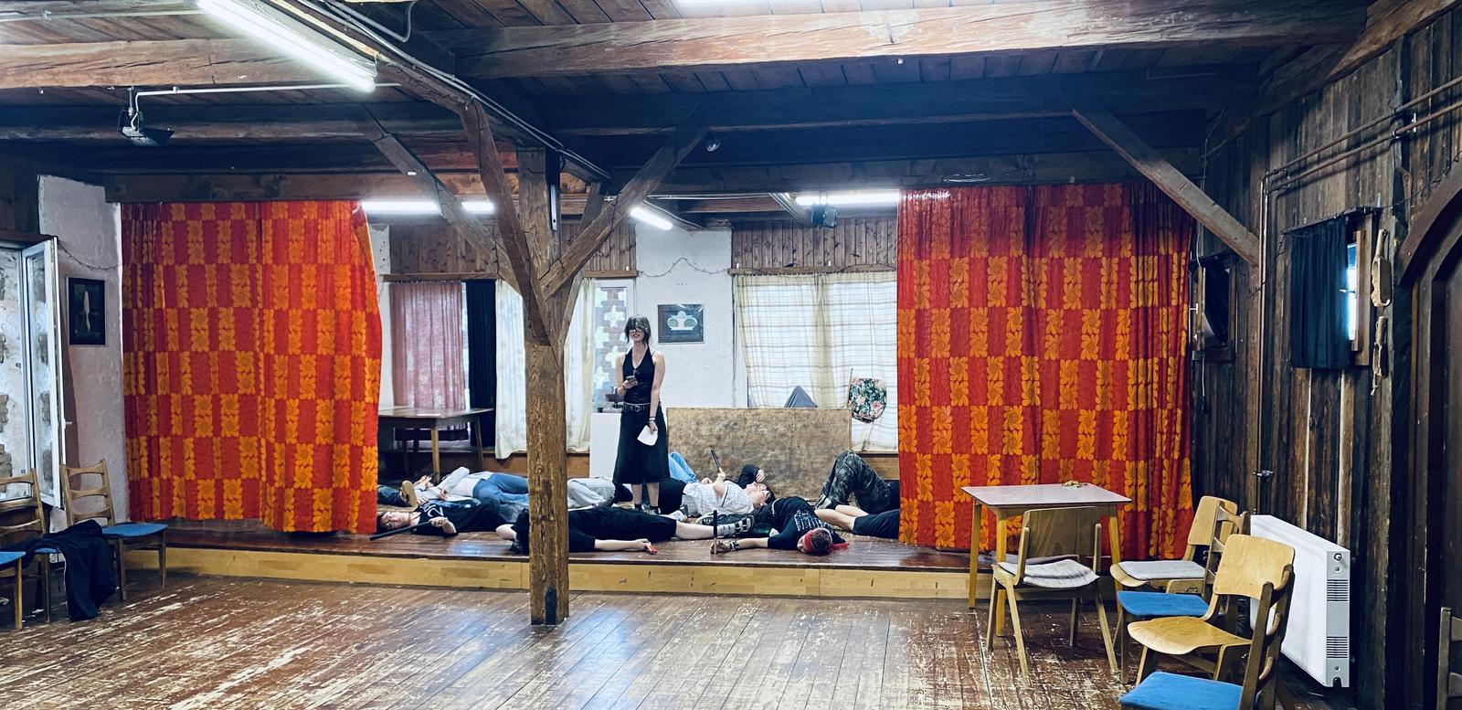 Aus diesem Diskurs heraus sind Form und Inhalt der Performance entstanden. In einigen improvisierten Übungen sind anschließend einzelne Szenen entstanden, die wiederrum gefeedbackt und weiterentwickelt wurden. Aufgrund der Tatsache, dass nichts im Speziellen für einen Theaterprozess vorbereitet oder mitgebracht worden war, war Einfallsreichtum, Flexibilität und improvisationstalent gefragt.