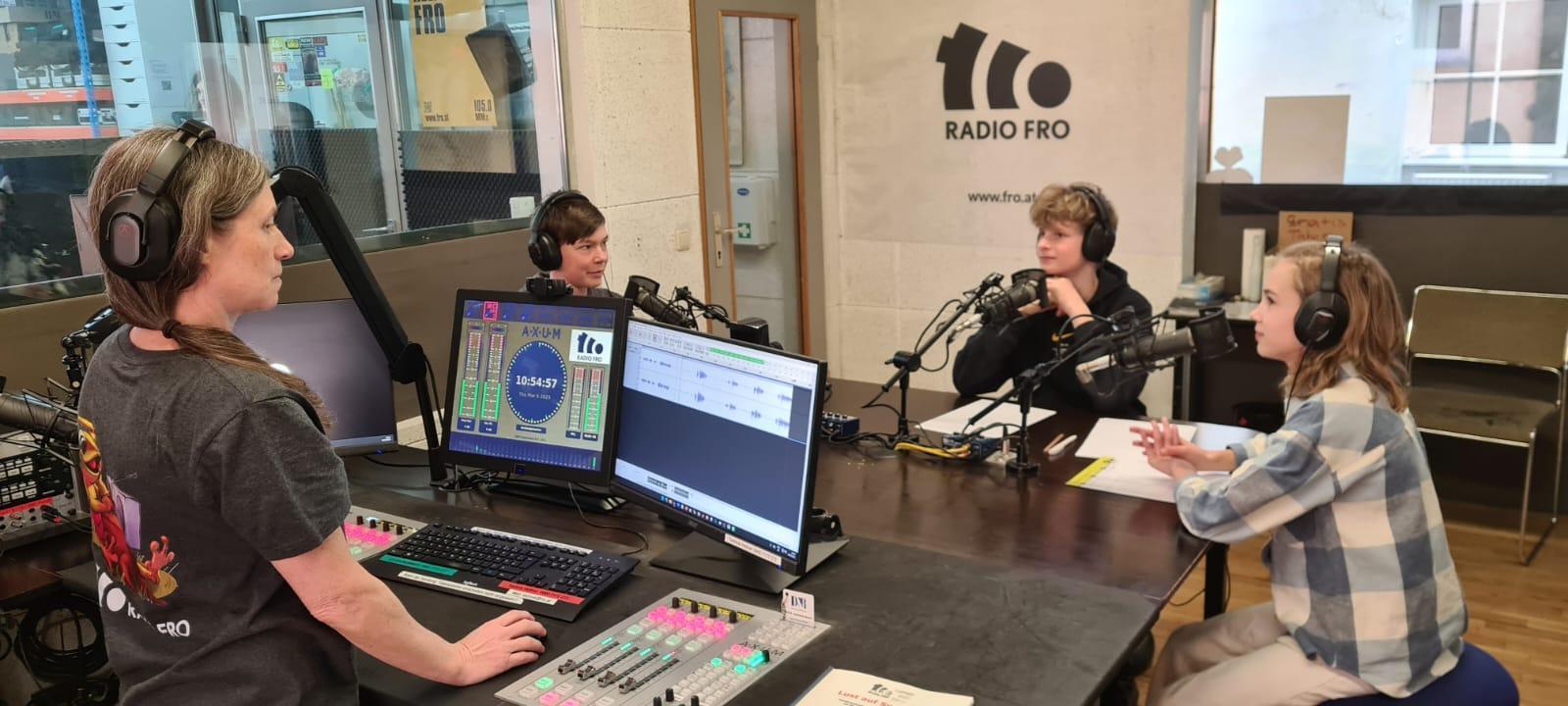 Am ersten Tag bei Radio FRO haben die Schüler/innen etwas über die Produktion von Radiosendungen erfahren und was es alles dazu braucht. Sie haben in Kleingruppen ihre Ideen formuliert und Skripts für ihre Beiträge erstellt und Hausaufgaben mit nach Hause genommen: jeweils ein Musikstück, Müll sammeln und abwiegen, kleine Theaterstücke proben, den eigenen CO2 Abdruck erstellen, etwas nachschauen und prüfen, ob es wahr ist…