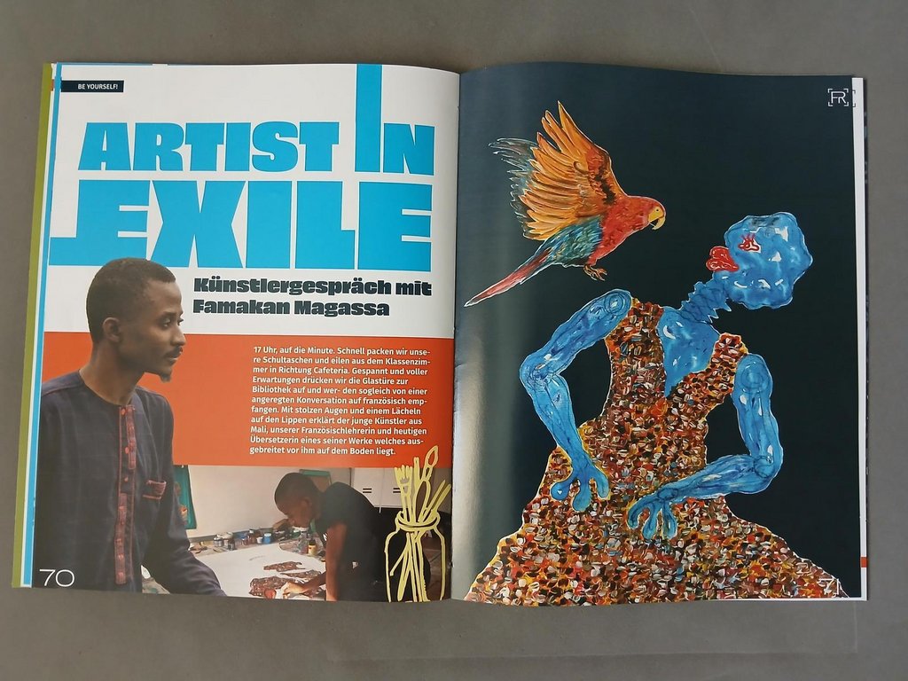 Das Magazin-Projekt des 3. Jahrgangs für Grafik und Kommunikationsdesign begann auf der Inhaltsebene in Kooperation mit der Kulturvermittlung Steiermark bereits im Herbst 2024, als die Schüler/innen sich in ersten Künstler/innen-Gesprächen, Workshops und beim Besuch von Veranstaltungen (z.B. Gedenken an den Genozid in Ruanda) mit verschiedenen gesellschaftspolitischen und künstlerischen Positionen auseinandersetzten. Künstler/innen-Gespräche vor dem Hintergrund des Jugoslawienkrieges, Begegnungen mit einem malischen Künstler oder Diskussionen über den Kunstbetrieb mit einer slowakischen Literatin waren für die Jugendlichen inspirierend und fanden Eingang in ihre individuell gestalteten Magazinprojekte. In dieser ersten Phase reflektierten die Jugendlichen schriftlich über das Erlebte bzw. Gehörte und produzierten Texte zu den Veranstaltungen bzw. Plakate für die "Events".