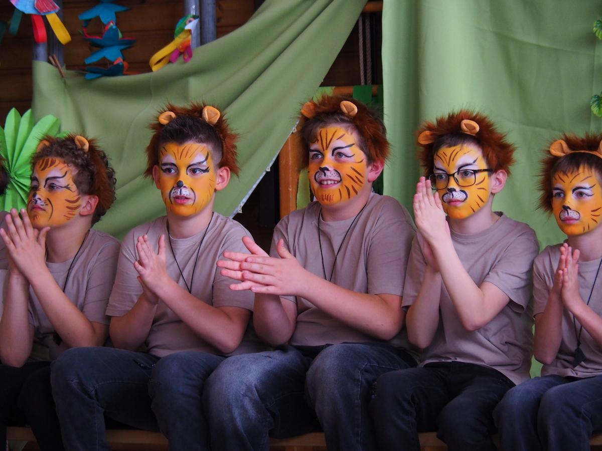 Die Geschichte "Giraffes can't dance" von Giles Andreae, Guy Parker-Rees, wird in Form eines Tanztheaters mit 82 Schülerinnen und Schülern musikalisch und tänzerisch gestaltet. In dieser Geschichte lernen die Giraffen auf ihre eigene Stimme zu hören, ihre Einzigartigkeit wahrzunehmen und finden den Mut anders oder einfach sie selbst zu sein.