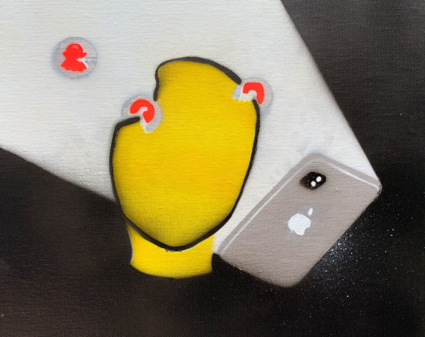 Im Wahlpflichtfach bildnerische Erziehung bekamen die Schüler/innen die Aufgabe, mit einem Stencil ein kritisches Thema der heutigen Gesellschaft darzustellen. Ein Gedanke eines Schülers war es, das Thema Smartphone ins Visier zu nehmen. Nach dem Skizzieren zeichnete er fünf Schablonen und und schnitt sie aus. Auf einer Leinwand sprühte er mit Hilfe dieser dann mit Sprühfarbe einen Kopf, der in das täuschende Licht des Smartphones blickt und durch die Apps langsam aufgefressen wird. Zitat: „Das Motiv soll unsere Abhängigkeit von Social Media und Smartphones zeigen und die Scheinheiligkeit dieser Technologie, die eine so große Präsenz in unserem Leben hat." Eine andere Schülerin hat sich mit dem Thema "Social Distance" und eine weitere Schülerin mit dem Thema "Black lives matter" beschäftigt.