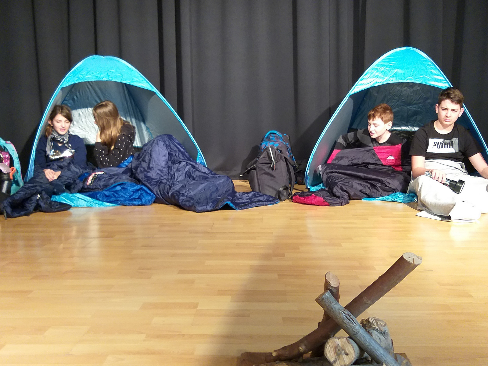 Die Schülerinnen und Schüler waren von Beginn an in das Projekt eingebunden. Nach einer offenen Präsentation der Stück-Idee wurden im Rahmen einer Ideenwerkstatt Szenen und Typen entwickelt. Manches wurde szenisch in der Improvisation ausprobiert und verfeinert, ehe es von den Schülerinnen und Schülern zu Papier gebracht wurde.