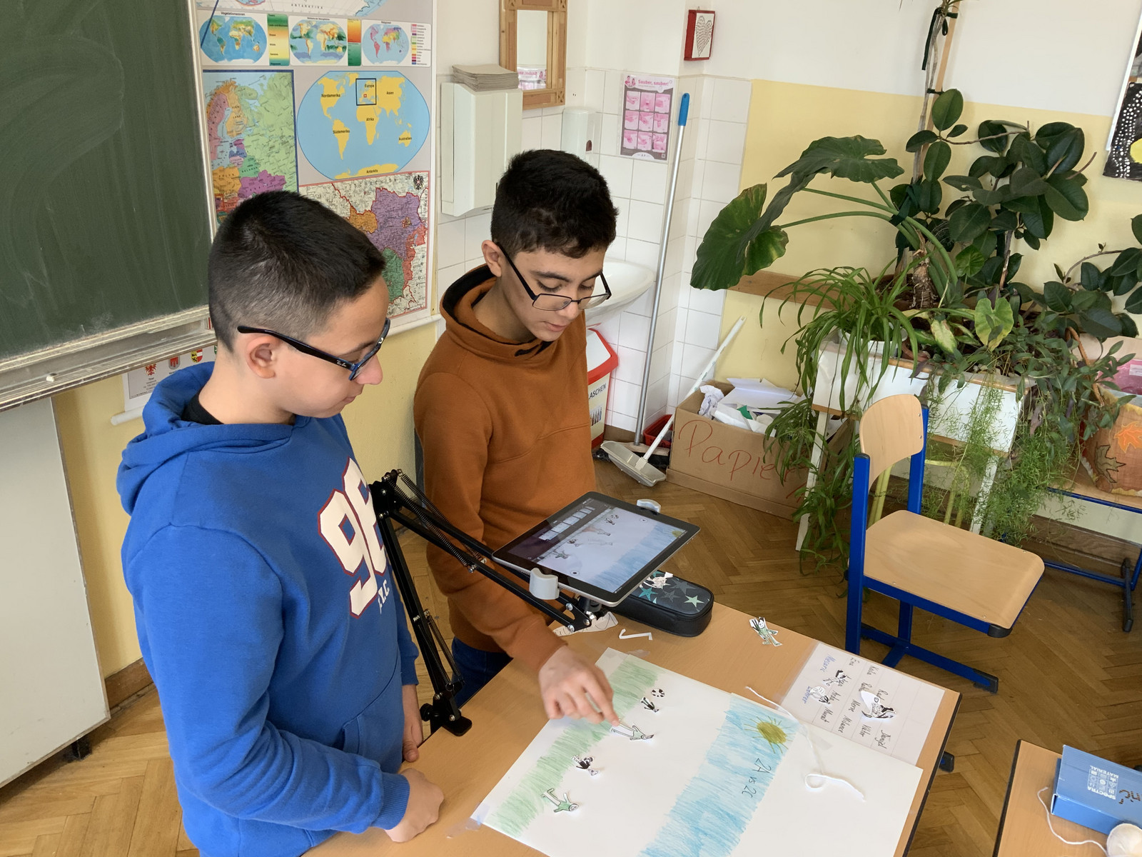 Die 2a der Mittelschule Brüßlgasse des 16. Wiener Gemeindebezirks besteht aus 21 Schüler/innen mit 11 verschiedenen Erstsprachen. Das Besondere in dieser Gruppe ist nicht nur die Tatsache, dass es eine iPad Klasse ist, sondern auch, dass es sich um eine Integrationsklasse handelt, die von zwei Lehrenden betreut wird, deren Fachgebiete Mathematik, Zeichnen, sowie Deutsch und digitale Grundbildung sind. Die Lehrenden haben sich für ein fächerübergreifendes Projekt entschieden, in dem es um Zahlen und Sprachen geht. Das Interesse der Schüler/innen am Zeichnen und an der Anwendung kreativer Apps am iPad wurde aufgegriffen, kombiniert und führte zur Erstellung eines Zeichentrickfilmes über mehrsprachiges Zählen.