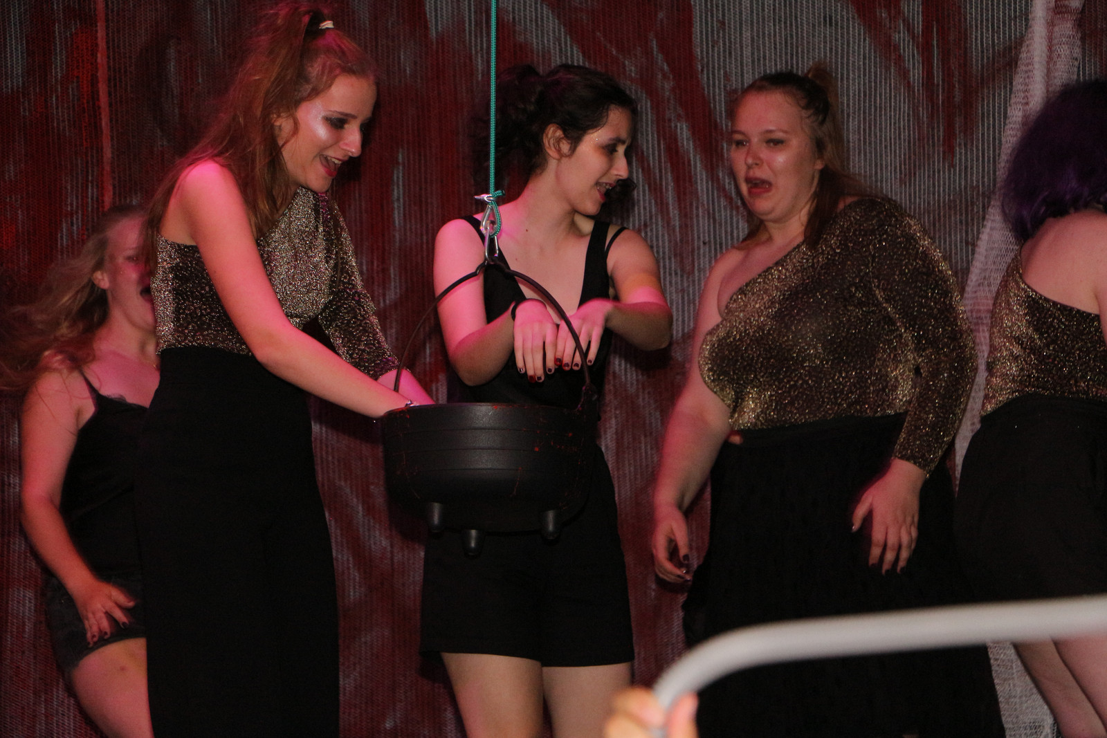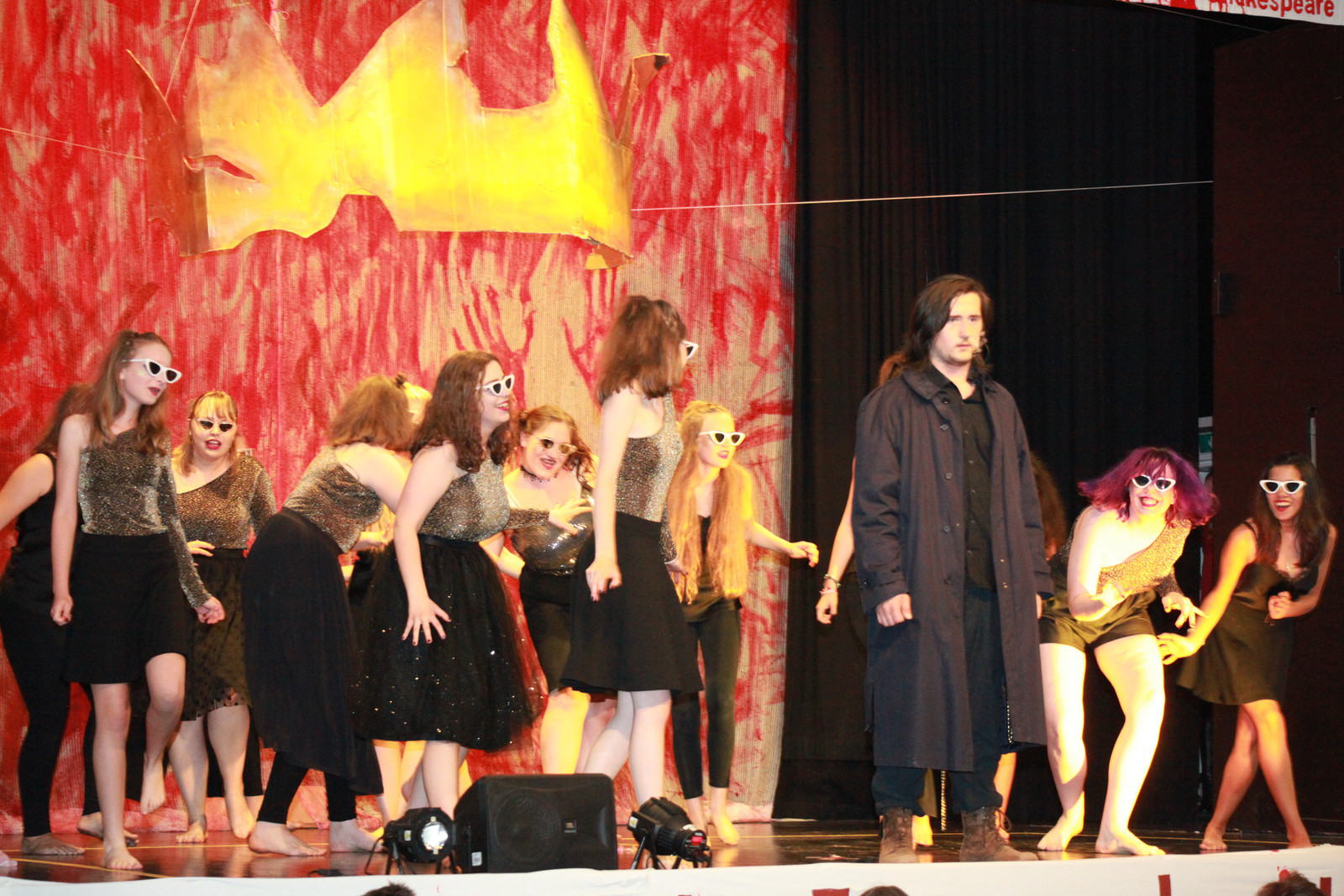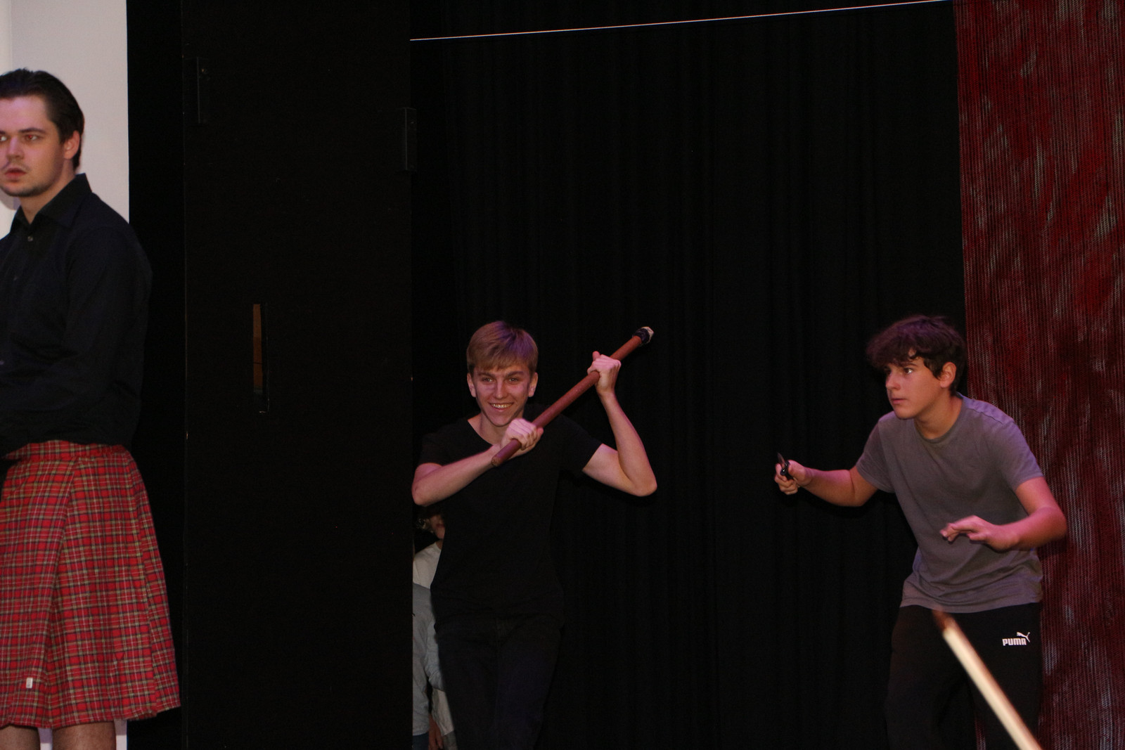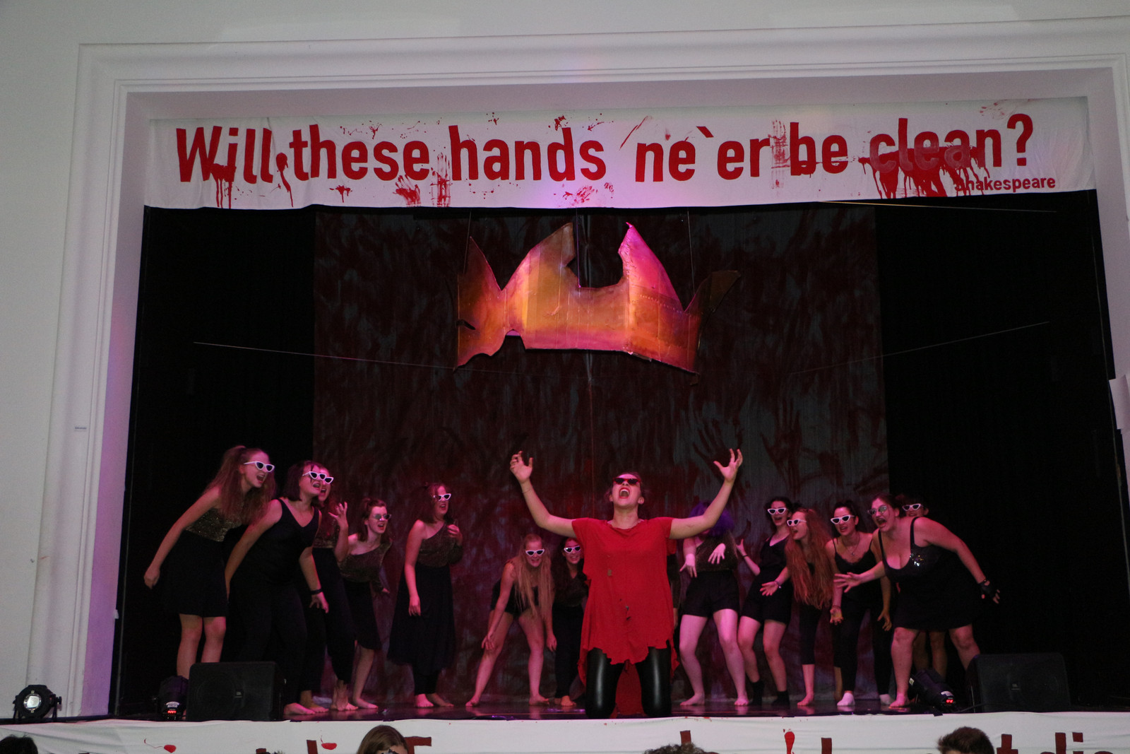 Die Theaterproduktion thematisierte Shakespeares berühmte Tragödie über Machtergreifung und Machterhalt um jeden Preis: Macbeth. Die Parallelen Macbeths zu Brechts Mackie Messer aus dessen Dreigroschenoper flossen dabei mit ein und werden bereits im Titel des von der Theatergruppe selbst adaptierten/geschriebenen Stückes deutlich: MACkieBETH.