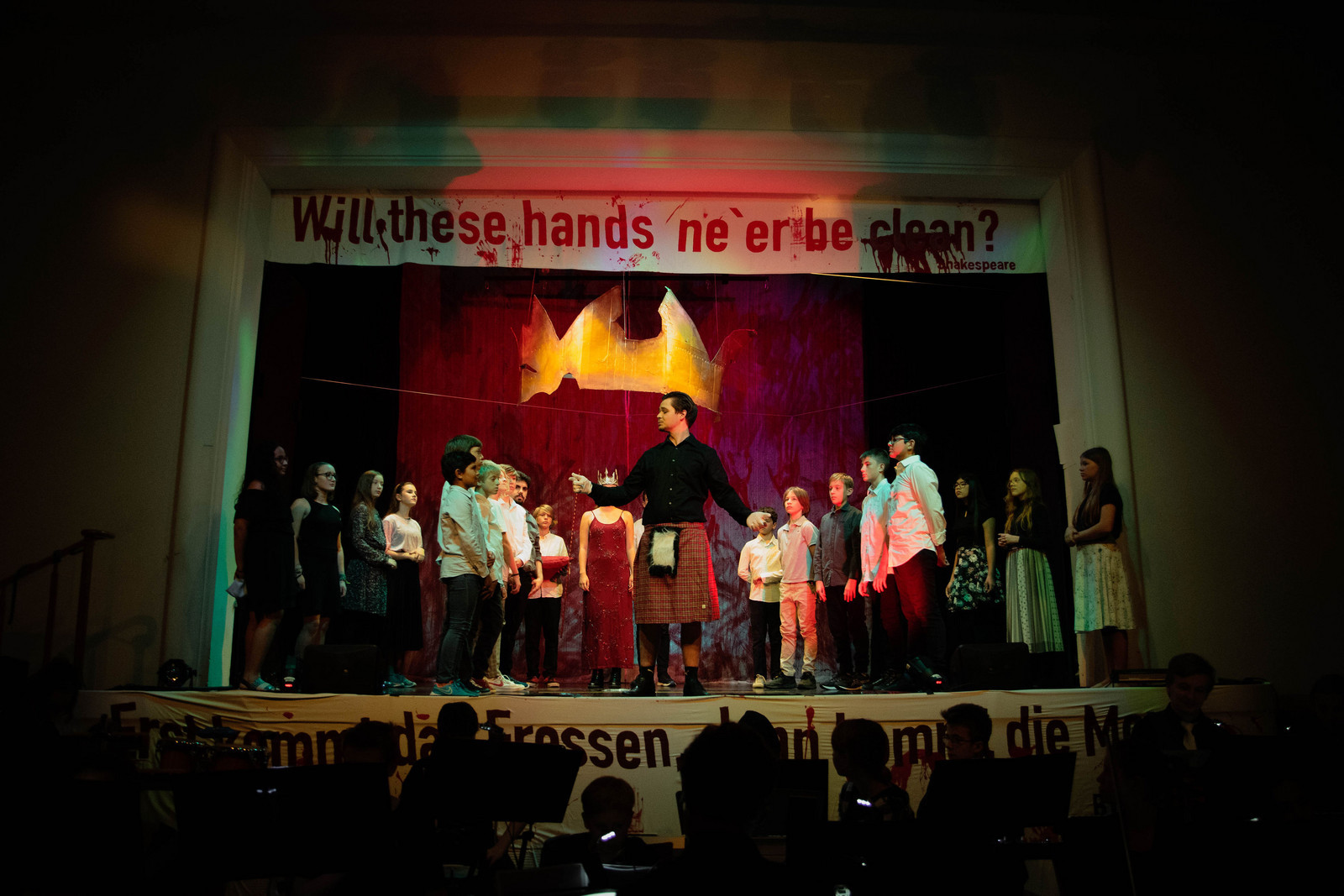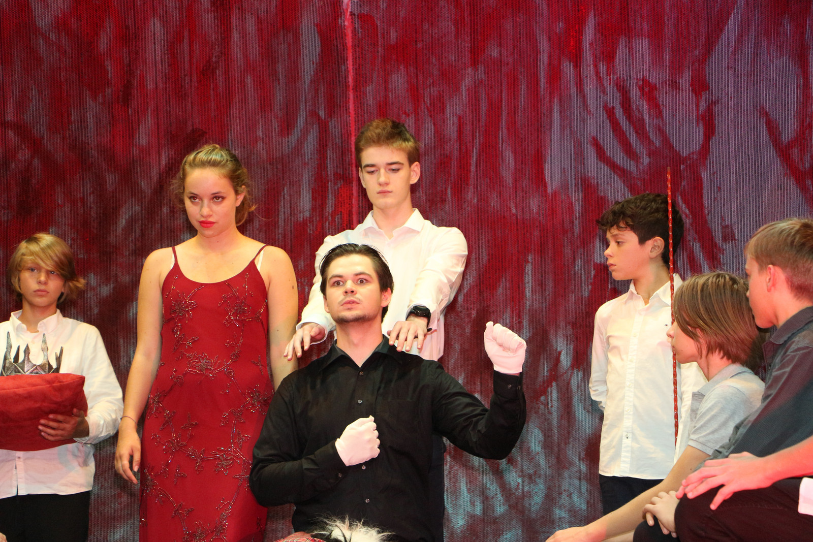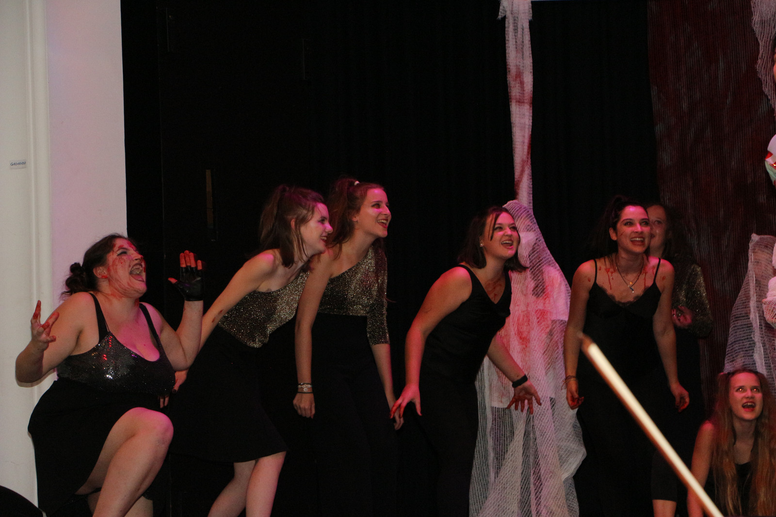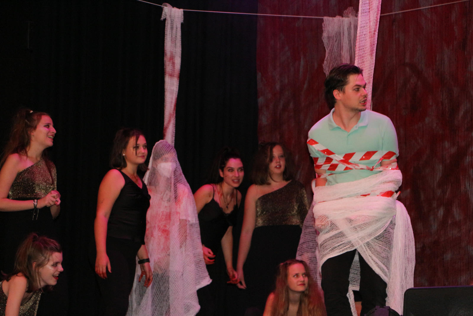Die Theaterproduktion thematisierte Shakespeares berühmte Tragödie über Machtergreifung und Machterhalt um jeden Preis: Macbeth. Die Parallelen Macbeths zu Brechts Mackie Messer aus dessen Dreigroschenoper flossen dabei mit ein und werden bereits im Titel des von der Theatergruppe selbst adaptierten/geschriebenen Stückes deutlich: MACkieBETH.
