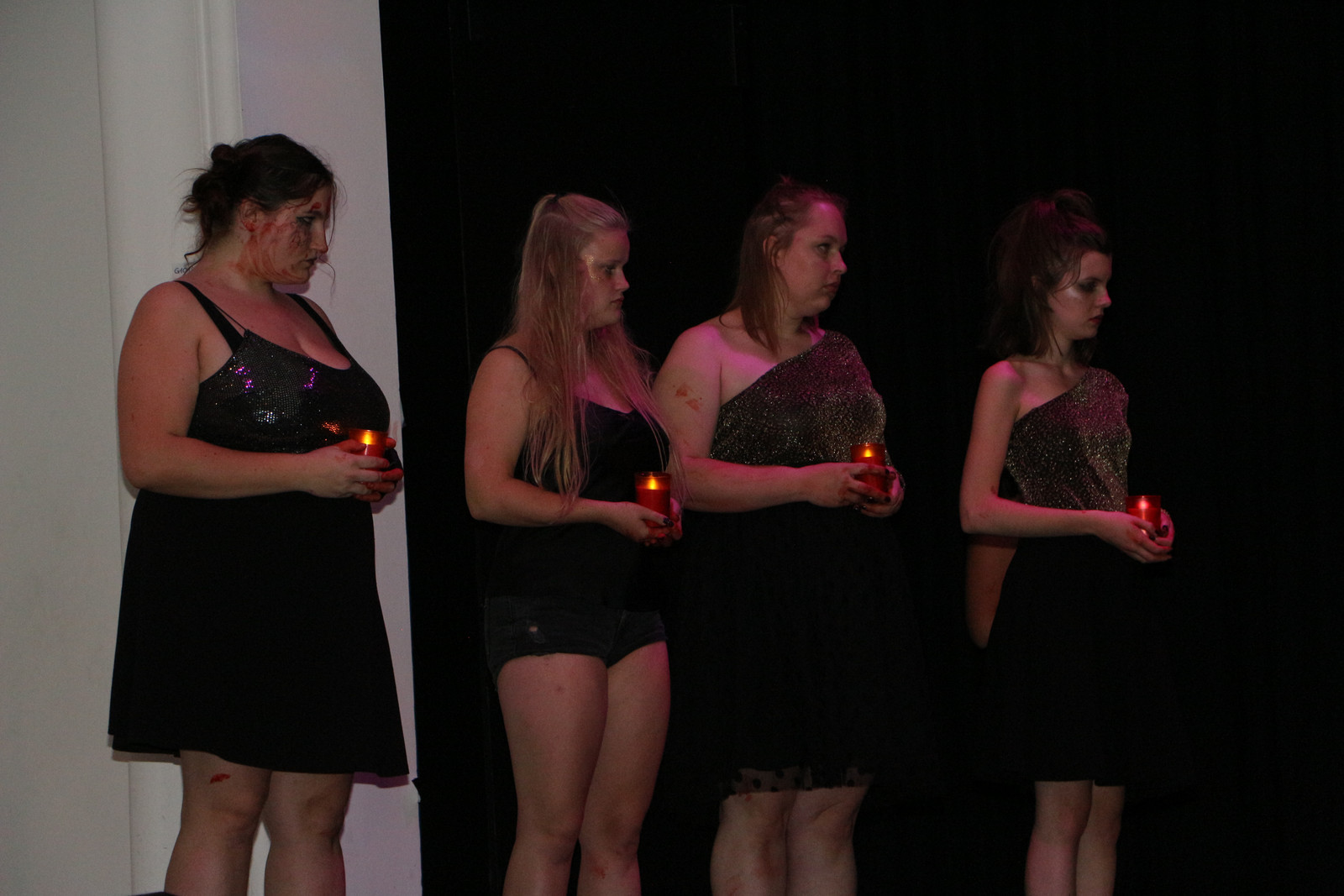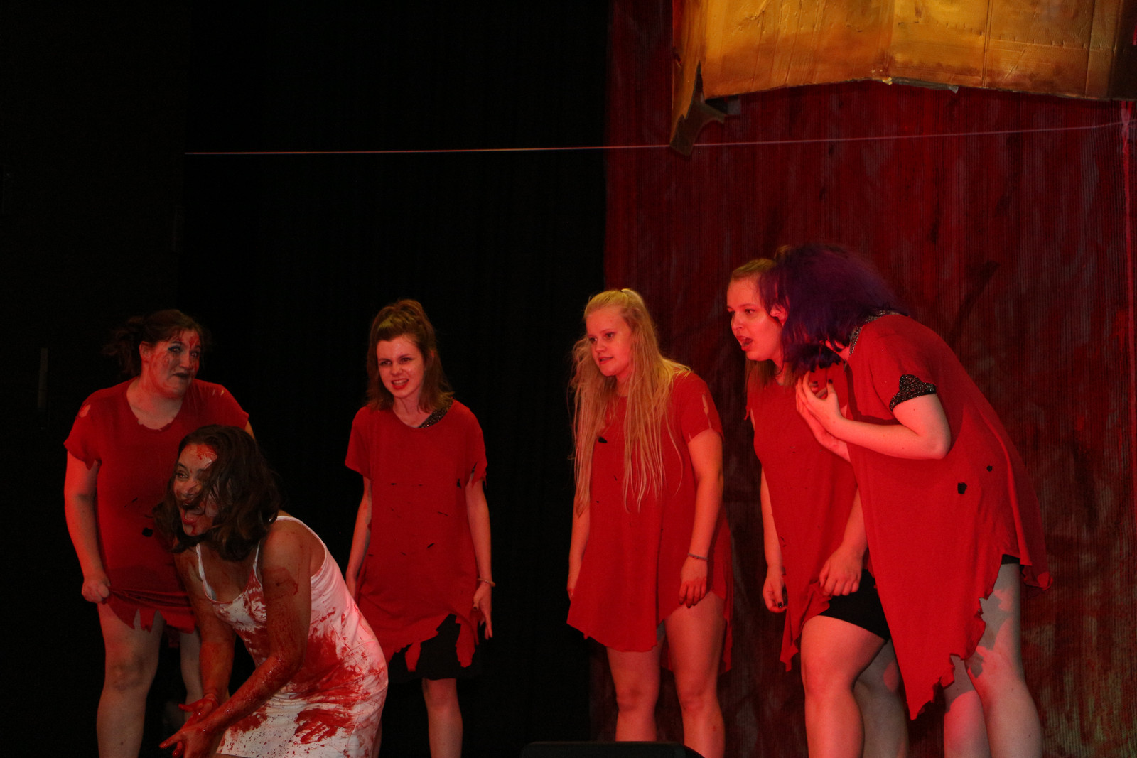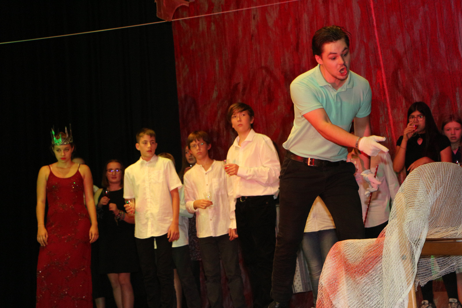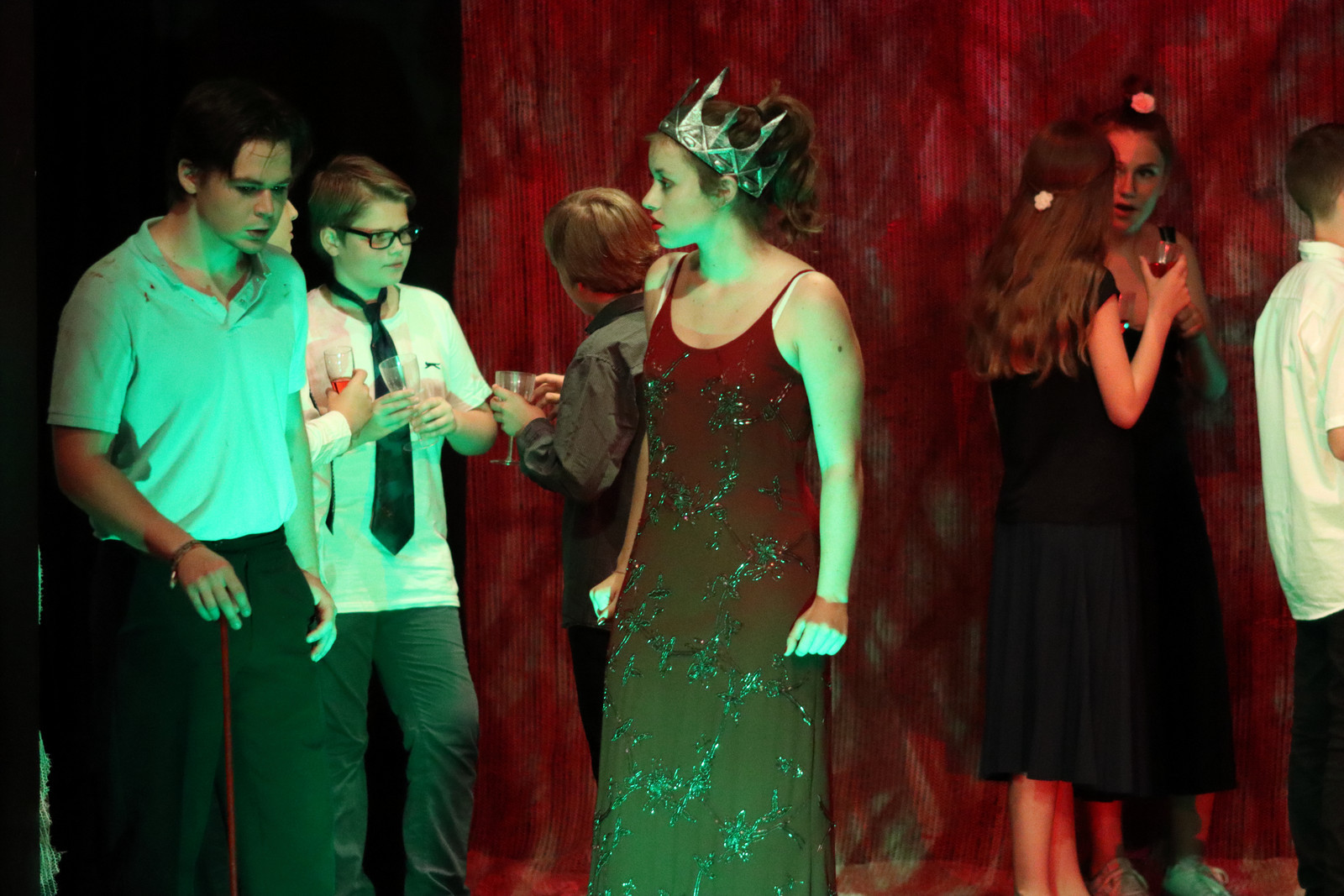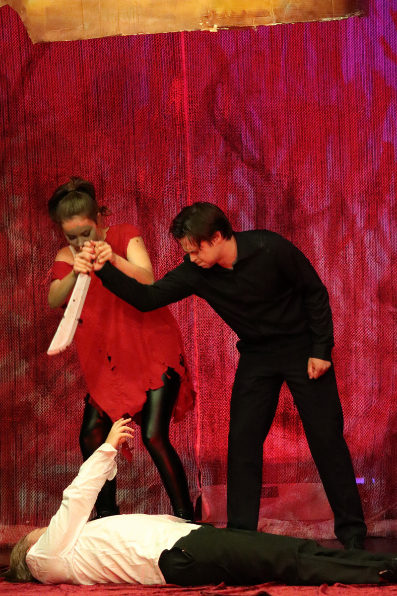 Die Theaterproduktion thematisierte Shakespeares berühmte Tragödie über Machtergreifung und Machterhalt um jeden Preis: Macbeth. Die Parallelen Macbeths zu Brechts Mackie Messer aus dessen Dreigroschenoper flossen dabei mit ein und werden bereits im Titel des von der Theatergruppe selbst adaptierten/geschriebenen Stückes deutlich: MACkieBETH.