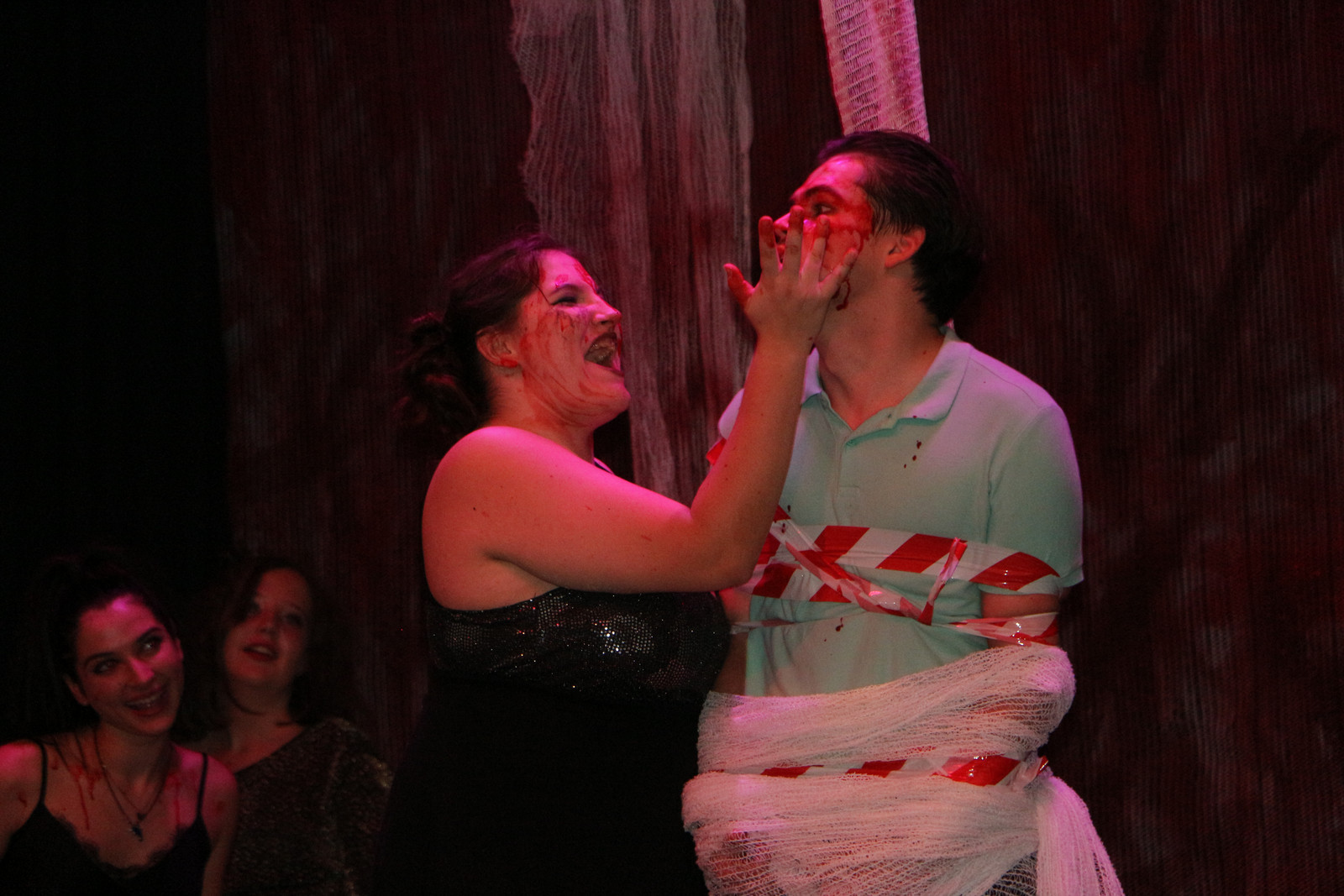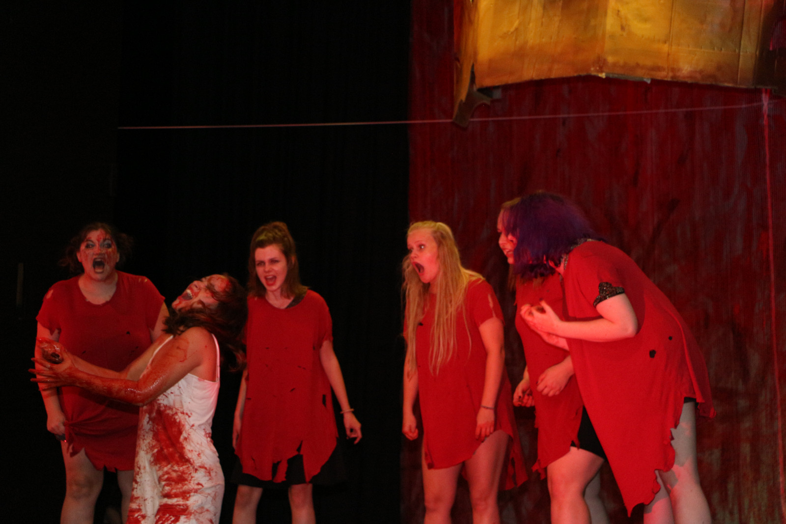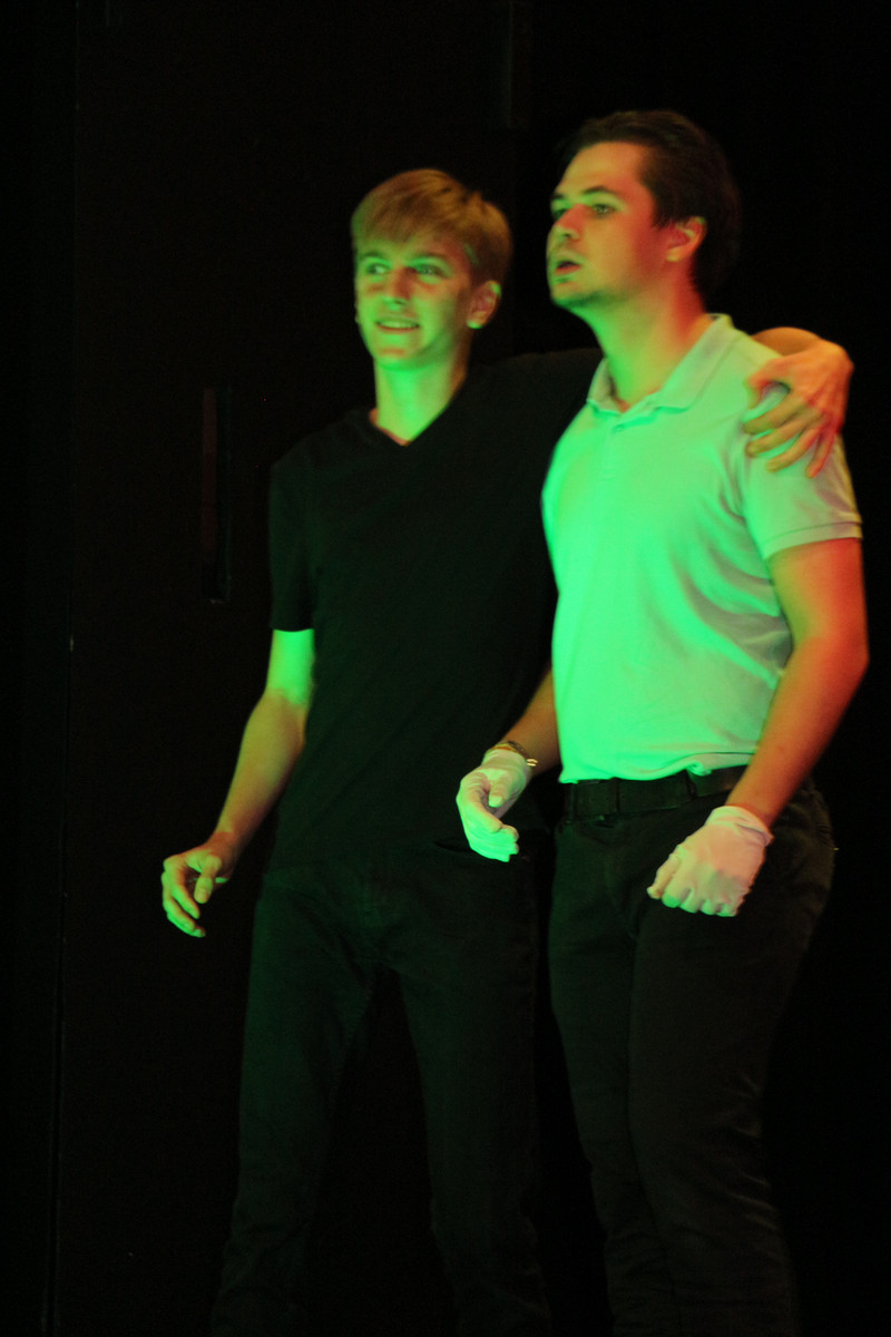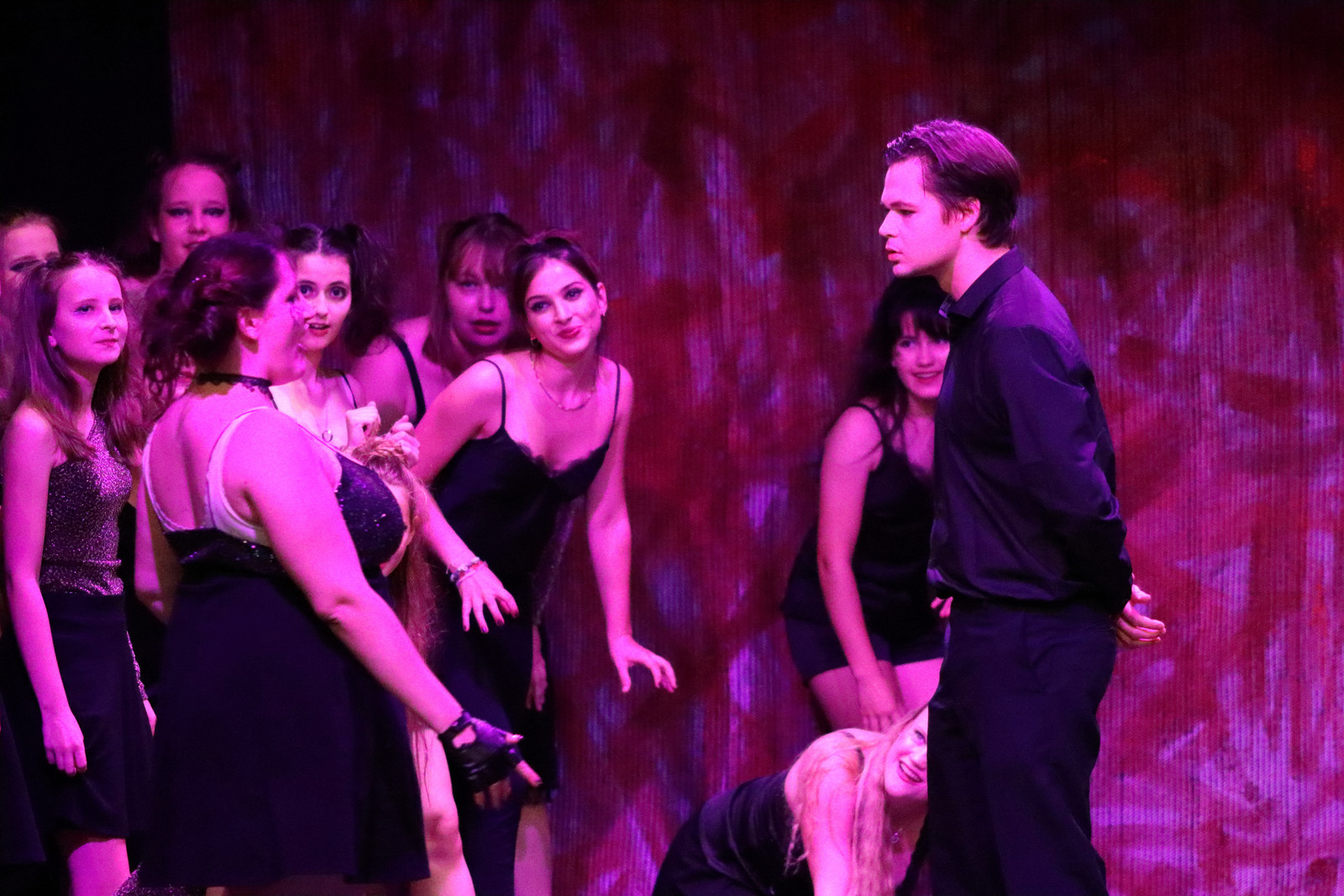 Die Theaterproduktion thematisierte Shakespeares berühmte Tragödie über Machtergreifung und Machterhalt um jeden Preis: Macbeth. Die Parallelen Macbeths zu Brechts Mackie Messer aus dessen Dreigroschenoper flossen dabei mit ein und werden bereits im Titel des von der Theatergruppe selbst adaptierten/geschriebenen Stückes deutlich: MACkieBETH.