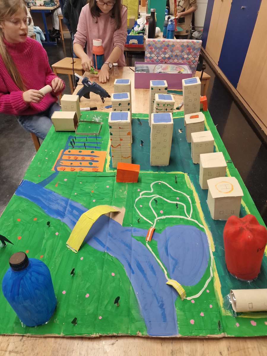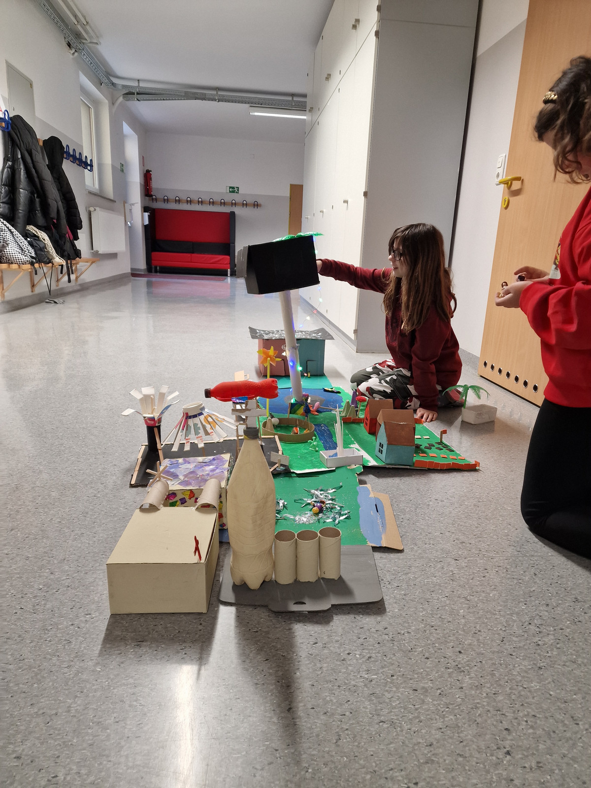Dieser Frage widmeten sich die Schülerinnen und Schüler der 2a der Mittelschule Kirchberg an der Raab im Rahmen des Geografie- und Wirtschaftskundeunterrichts. Über einen Zeitraum von mehreren Wochen erarbeiteten sich die Schüler ihre ganz persönlichen nachhaltigen Stadtmodelle. Bei der Auswahl der Materialien stand Nachhaltigkeit ebenfalls im Fokus: es wurde hauptsächlich mit recycelten Materialien gearbeitet und die Modelle wurden größtenteils aus Karton gebaut.