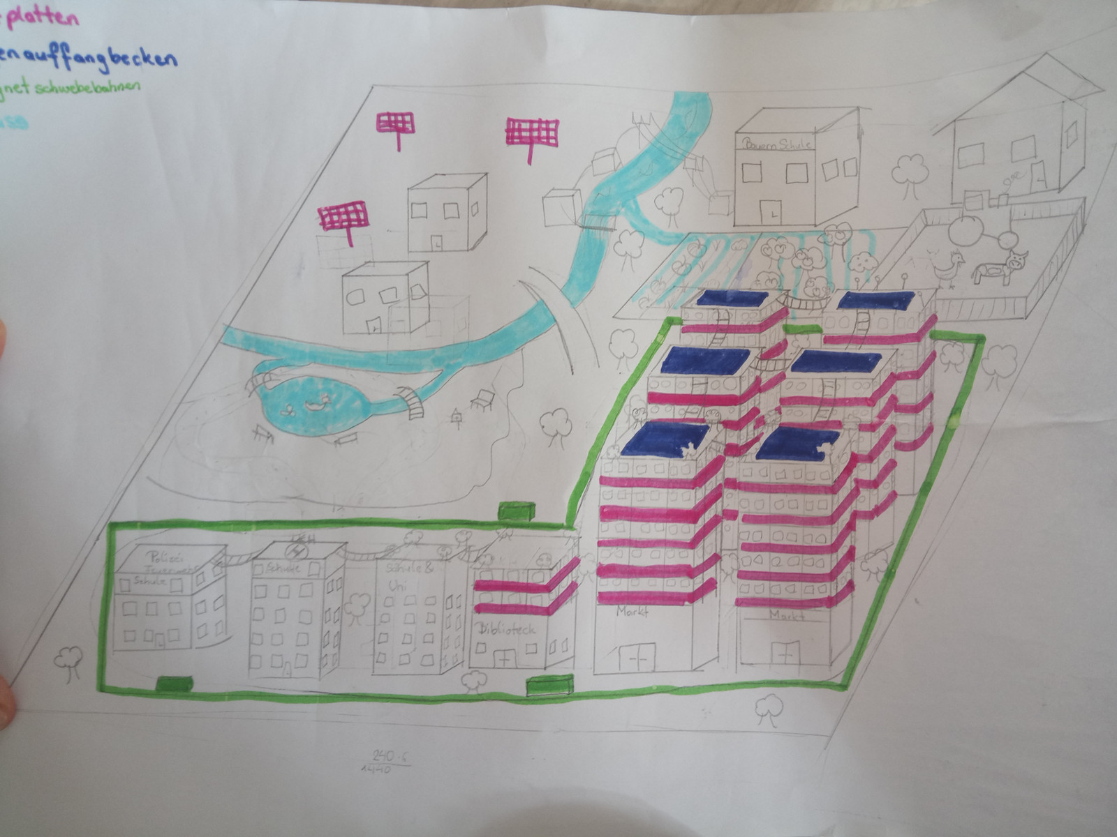 Den Ideen und der Kreativität der Schülerinnen und Schüler wurde keine Grenzen gesetzt, und so entstanden Ideen wie Wasserbecken am Dach von Hochhäusern, die den Wasserbedarf der Bewohner decken, komplett begrünte Städte, ganze Städte in denen nur regionale Produkte verkauft werden und interessante Ansätze für nachhaltiger Verkehrskonzepte.