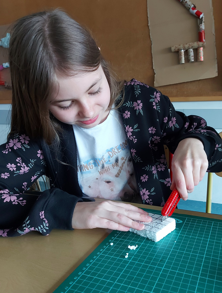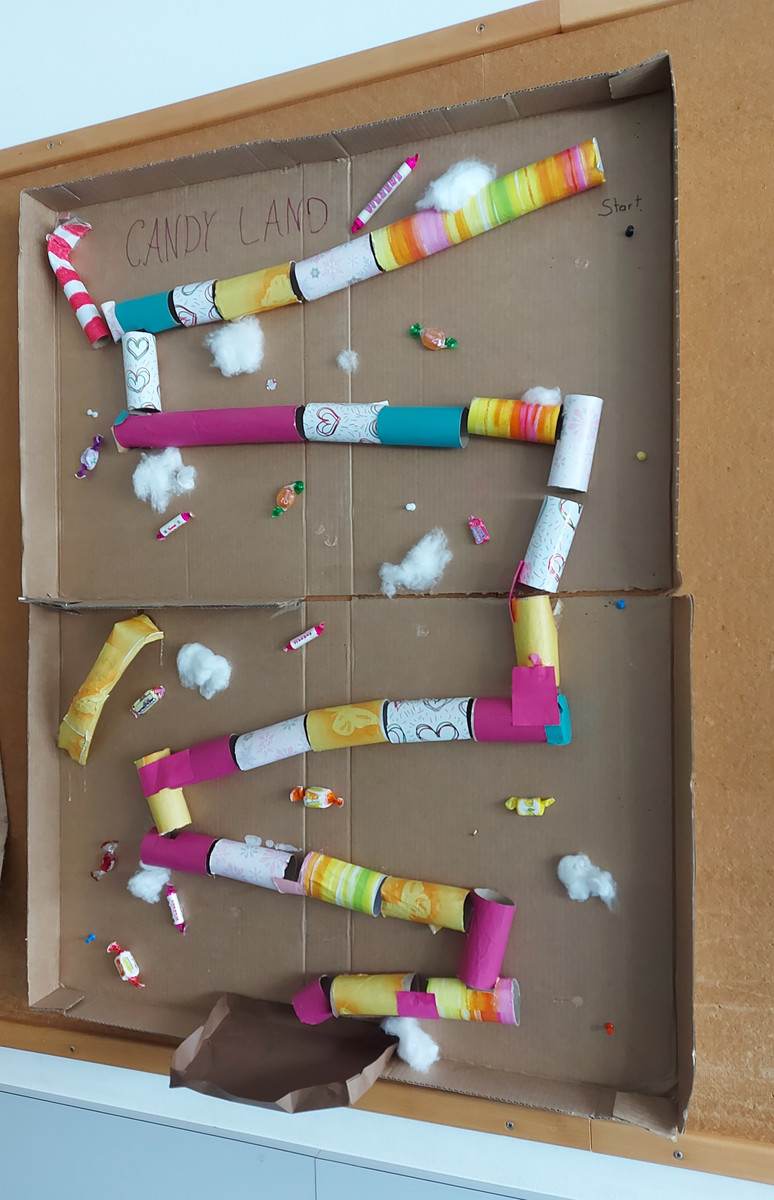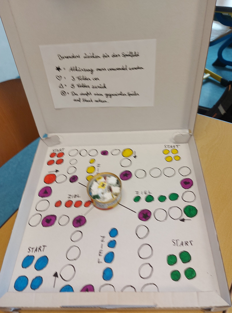 In verschiedenen Partner- und Gruppenarbeiten entstanden sechs verschiedene Spiele. Die Schüler/innen fertigten Spielsteine aus Salzteig, Styroporabfällen und Holzresten, bemalt gesammelte Objekte aus verschiedensten Materialien und gestaltete Brettspiel mit Fragen rund um das Thema Müll.