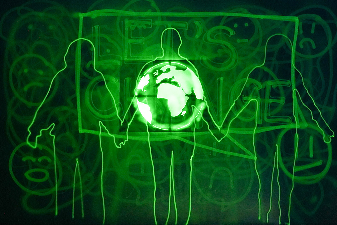 Lichtkunst ist eine sehr nachhaltige Kunstform. Seit 10 Jahren ist dieselbe Leinwand im Einsatz und es sind schon Tausende Bilder darauf entstanden.
