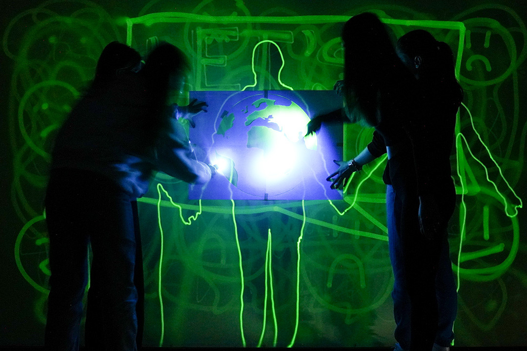 Eine 5. und eine 8. Klasse des BG Rainergasse beschäftigten sich in diesem Kreativprojekt mit der Lichtkunst. Es handelt sich bei dieser um eine vergängliche Kunstform, bei der in der Dunkelheit mit einer UV-Licht-Taschenlampe auf eine mit phosphoreszierenden Pigmenten beschichtete Leinwand gezeichnet wird. Das Bild verschwindet, je nach Grad der Dunkelheit, innerhalb weniger Minuten wieder. Ziel des Projektes war es, einen Stop-Motion-Film zu kreieren.