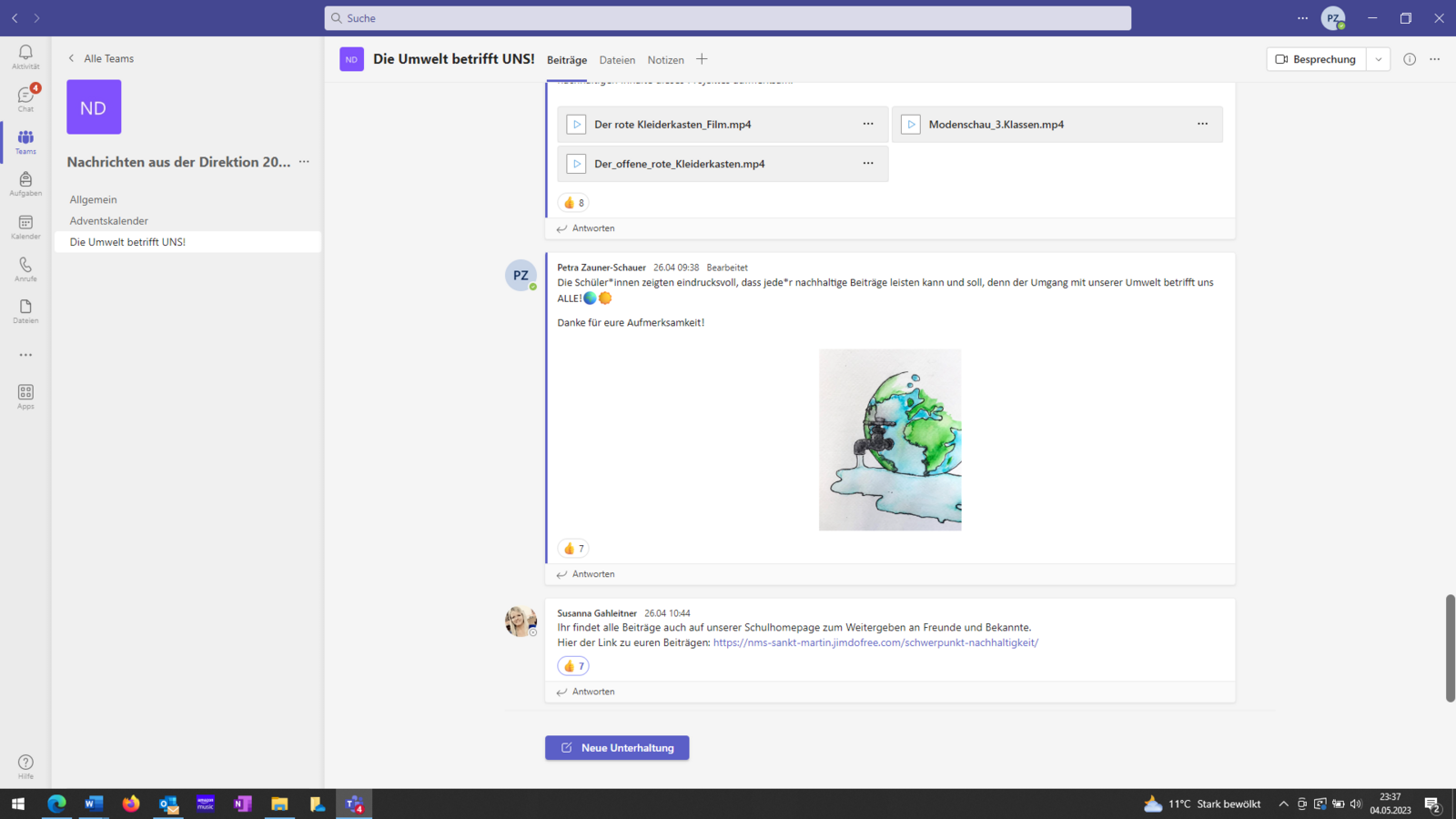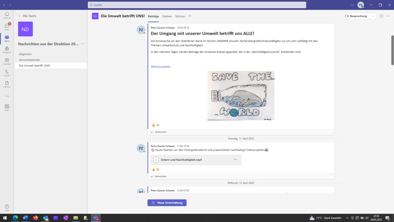 Die dabei entstandenen Kleinprojekte wurden in kreativen Videobeiträgen festgehalten und auf schulinternen via MS Teams sowie auf der Schulhomepage veröffentlicht. Die Themen der Videos reichen von Alltagstipps zum Ressourcenbewahren, über Anregungen für nachhaltige Ernährung und umweltschonende Hinweise fürs Einkaufen, bis hin zum Upcycling von Plastikverpackungen und Altpapier.