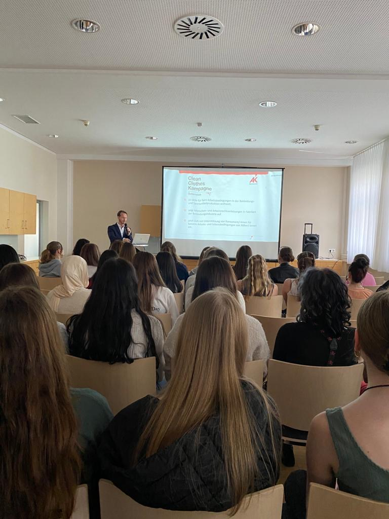 Im Rahmen des Schulfaches "Unternehmens- und Dienstleistungsmanagement" hatten die Schülerinnen und Schüler in diesem Schuljahr die Möglichkeit, sich mit Mode und Nachhaltigkeit zu beschäftigen. Sie begannen einen Aktionstag, den "Fair Wear Day", zu organisieren, um verschiedene Aspekte dieses Themas zu beleuchten und die ganze Schule einzubeziehen und zu informieren.