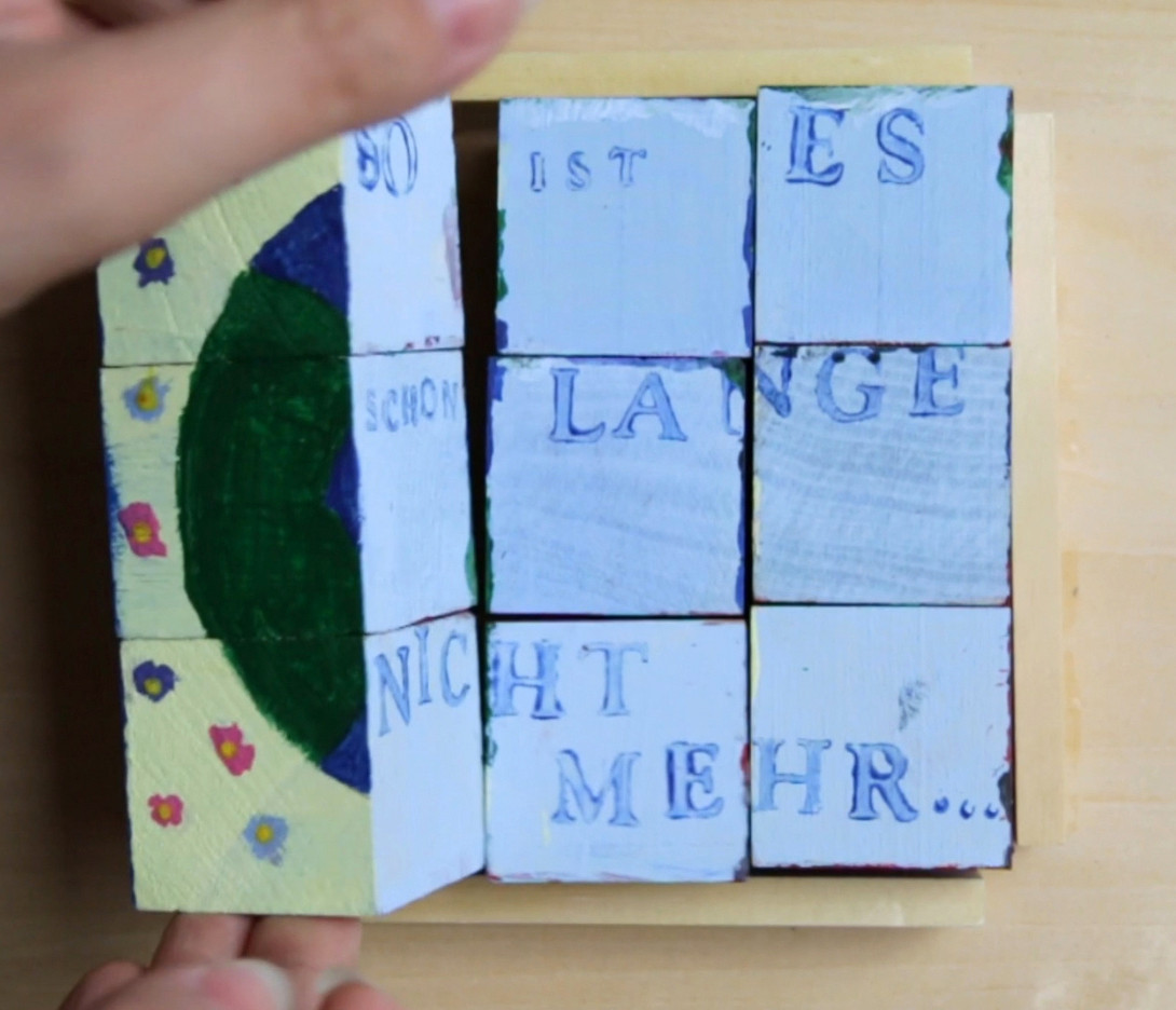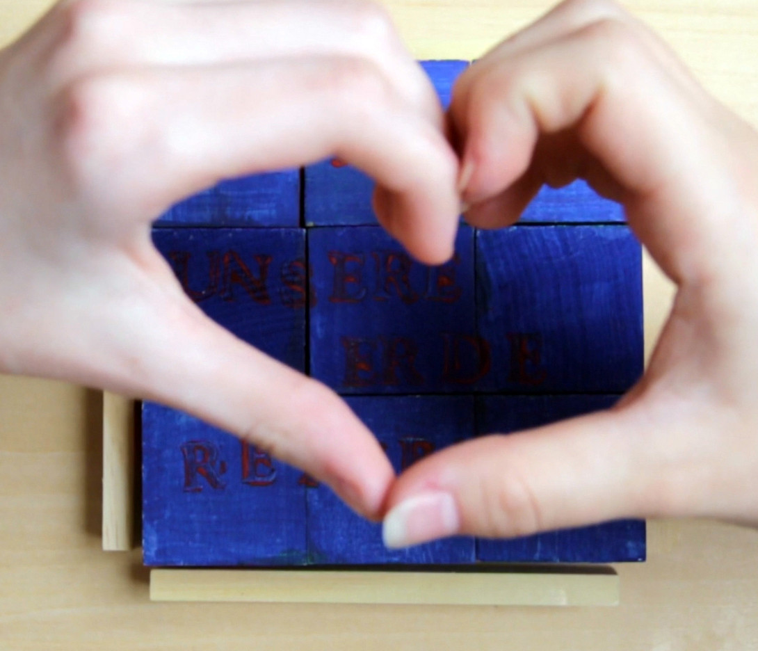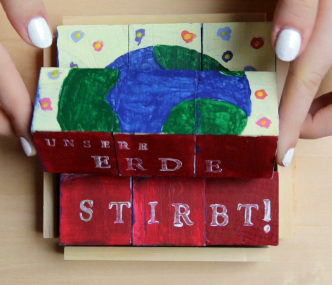 In drei Projektgruppen wurden passende Ausdrucksformen dafür entwickelt: eine zerberstende Weltuntergangs-Pinata, ein auf unsere Handlungsspielräume hinweisendes Würfelpuzzle, und ein von vielen Händen gehaltener Erdball. Zum Abschluss wurden die entstandenen Arbeiten einzeln gefilmt und in einem gemeinsamen Video vereint. In der Abfolge der drei Kurzfilme wird der gemeinsame Grundgedanke sichtbar. Das Ganze ist in diesem Fall somit mehr als die Summe seiner Teile. Die Ergebnisse liefern somit einen unmittelbaren und unverfälschten Einblick in die Gedanken- und Gefühlswelt der Jugendlichen – in ihre Zukunftssorgen und ihre Hoffnungen auf eine bessere Welt.