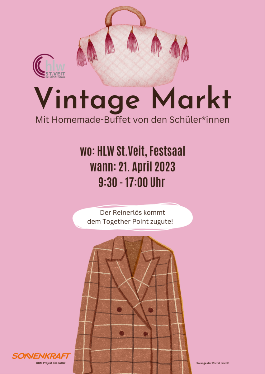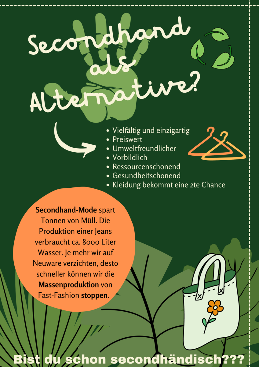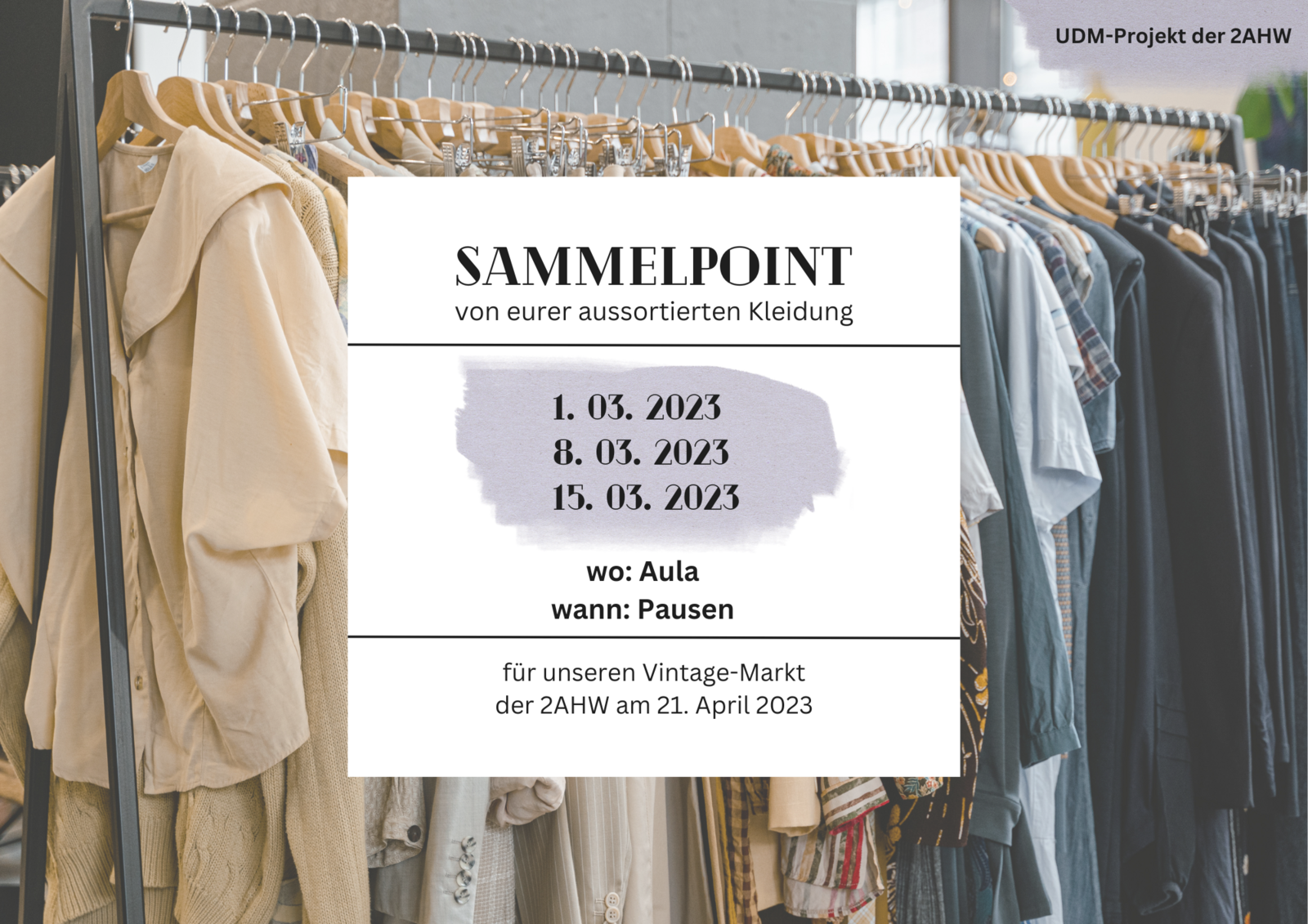 Im März sammelten die Jugendlichen in der Schulgemeinschaft aussortierte Kleidung und beworben ihr Projekt über Social Media und in den Klassen mithilfe kreativer Videos und Plakate. Der Reinerlös des Projektes sowie die nicht verkaufte Kleidung wurden dem gemeinnützigen Verein Together (https://www.act2gether.at/) gespendet. Durch das ansprechende und zielgruppenorientierte Design der Werbemittel wollten die Jugendlichen andere Jugendliche für den nachhaltigsten Weg, Kleidung zu kaufen, animieren.