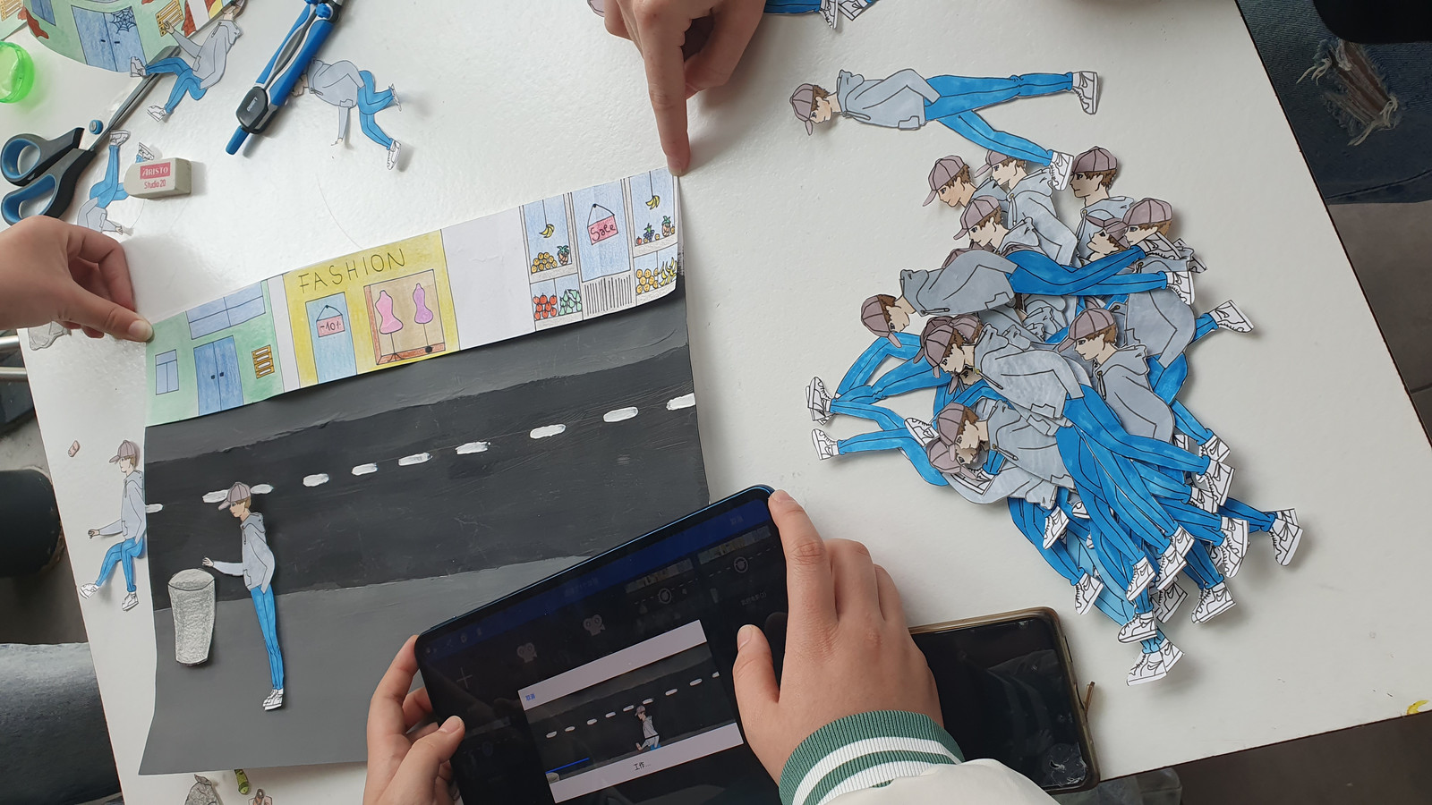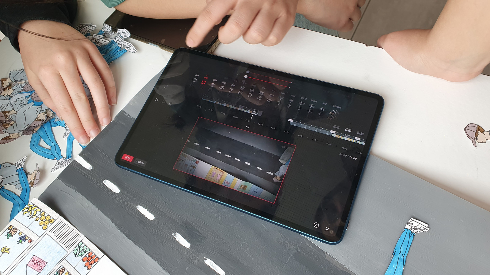 Zur Erstellung ihrer Kurzfilme fertigten die Kinder u.a. eigene Trickfilm-Zeichnungen an, gestalteten analoge 3D-Objekte aus Ton und Karton, verwendeten Legofiguren und arbeiteten auf eigenen Tablets und Handys.