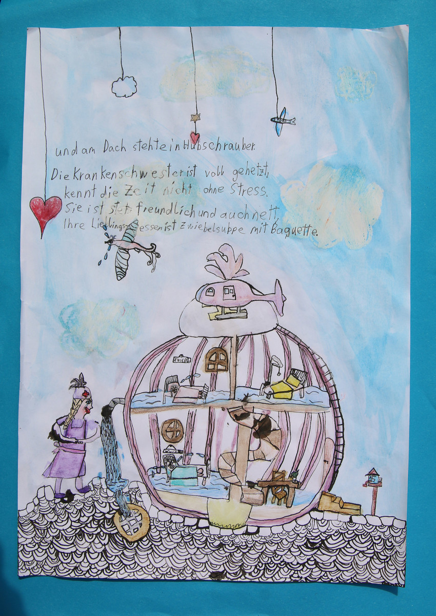 Die Kinder waren nun zwei Jahre im Klassenverband und sollen sich nachhaltig an ihre kreativen Mitschülerinnen und Mitschüler erinnern. Alle Zeichnungen wurden daher 24-mal gedruckt und im Unterricht von Hand zu eigenen Kinderbüchern gebunden – als Erinnerung an die nachhaltigste Gasse, die es je gab.