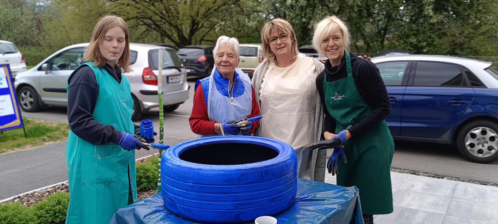 Bei diesem Projekt der MS St. Andrä stand im Vordergrund, eine Möglichkeit zu finden, wie Integrationsschülerinnen und -schüler der 4b und teils an Demenz erkrankter Klient/innen der Seniorentagesstätte im Ort generationenübergreifend zusammenarbeiten können. Die Jugendlichen entschieden, aus ausgedienten Autoreifen farbenfrohe Kräuterbeete zu schaffen, die den Garten der Seniorentagesstätte verschönern und gleichzeitig durch die bepflanzten Kräuter einen Beitrag zur gesunden Ernährung leisten.