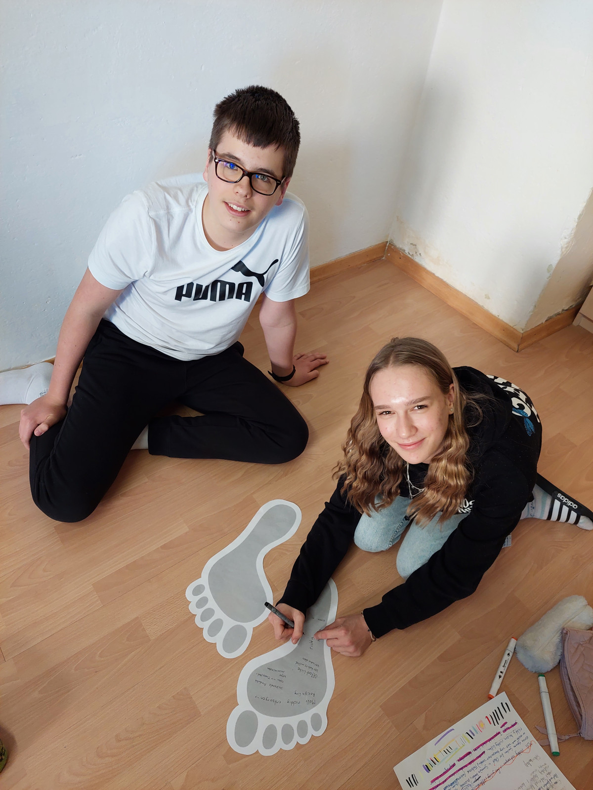 In ihrem fächerübergreifen Projekt gestalteten Schüler/innen der 3. Klasse der Mittelschule Kohfidisch Postkarten mit Botschaften für eine blühende Zukunft. Sie begannen mit einer intensiven Recherche, um herauszufinden, welche Maßnahmen sie ergreifen können, um ihren ökologischen Fußabdruck zu reduzieren. Ihre Überlegungen und Ideen dokumentierten sie in einer Mindmap, die symbolisch die Form eines Fußabdrucks darstellte. Zusätzlich erstellten sie Zeichnungen, die ihre Überlegungen visualisierten. Jeder und jede einzelne wählte einen Aspekt Umweltschutzes, der ihr oder ihm am Herzen lag, und überlegte, welche Botschaft sie oder er ihren bzw. seinen Mitmenschen vermitteln wollte. Diese individuellen Botschaften bildeten die Grundlage für die Gestaltung der Postkarten.