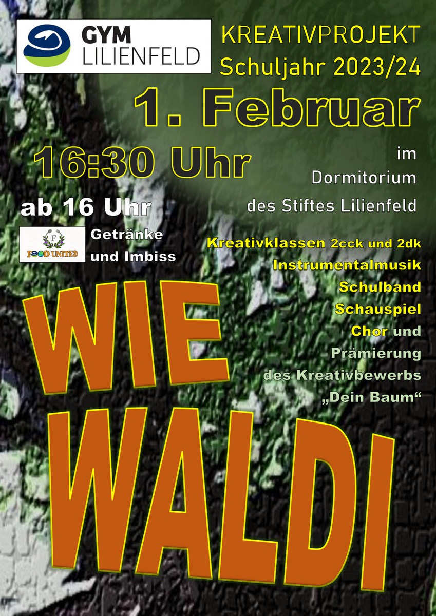 Im Theaterprojekt „Wie Waldi“ Schülerinnen und Schüler des Gymnasium Lilienfeld auf unterhaltsame Weise, wie wichtig die Wertschätzung und der Erhalt einer intakten Umwelt sind. Das Stück spannt einen Bogen vom Komponisten Vivaldi, über den Hund Waldi bis zu einer Baumversammlung am Muckenkogel, bei der die Bäume sich als doch nicht so stille Beobachter des Weltgeschehens entpuppen. Und Figuren wie Hänsel und Gretel oder dürfen in einem derart „waldigen“ Stück natürlich nicht fehlen. Die Schauspieltruppe, die Schulband, Instrumentalensembles, der Chor und die Kreativklassen 2cck und 2dk verzauberten mit einer abwechslungsreichen Vorstellung zum Thema Naturschutz.